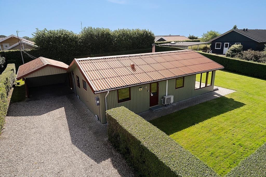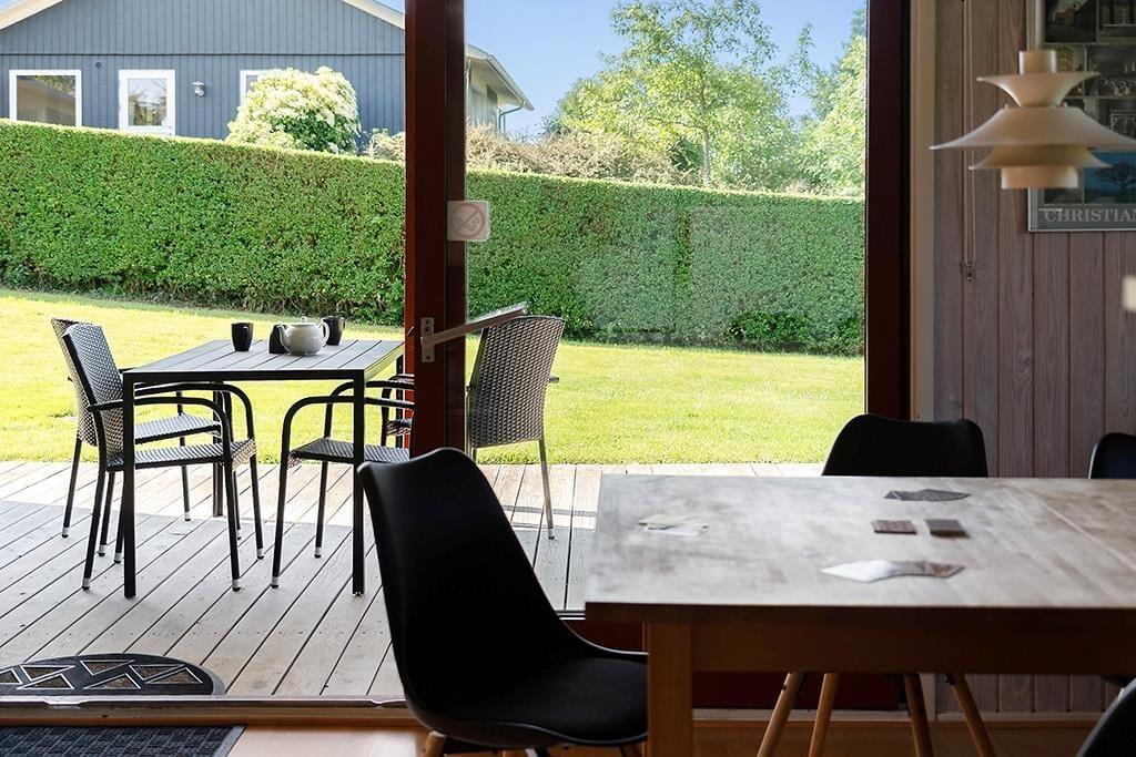 Udendørs byder sommerhuset på en skøn, grøn have og en dejlig terrasse, der indbyder til afslapning fra morgen til aften. Her kan du starte dagen med en kop kaffe i solen, mens du hører fuglene kvidre og mærker den friske brise fra havet. Haven er overskuelig og hyggeligt anlagt – perfekt til afslappende timer eller leg for familiens yngste. Terrassen er ideel til hyggelige grillaftener under åben himmel, hvor duften af sommermad og latter fra børn og voksne blander sig med lydene fra den omkringliggende natur. Det fredelige sommerhusområde gør det let at finde ro og mærke feriestemningen helt ind under huden – her er det afslapning og nærvær, der er i centrum.