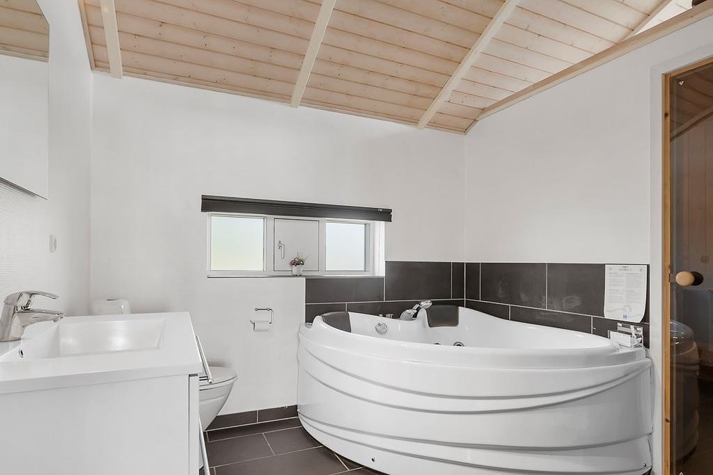 Sommerhuset på Teglgårdvej byder dig indenfor til et lyst og indbydende hjem, hvor stemningen straks føles både afslappet og hjemlig. Det centrale opholdsrum har loft til kip og store vinduespartier, der lader dagslyset strømme ind og skaber en åben og luftig atmosfære. Herfra er der frit udsyn til haven og de grønne omgivelser – og et glimt af havet i horisonten, der hele tiden minder dig om, hvor tæt du er på kysten. Det velindrettede køkken ligger i åben forbindelse med stuen og danner rammen om både madlavning og hyggeligt samvær, hvad enten det er morgenkaffe i ro og mag eller middagssnakke med familien. Sommerhuset har to badeværelser, hvor det ene forkæler dig med både sauna og spabad – perfekt til de kølige aftener, hvor du har brug for at slappe helt af og lade op.