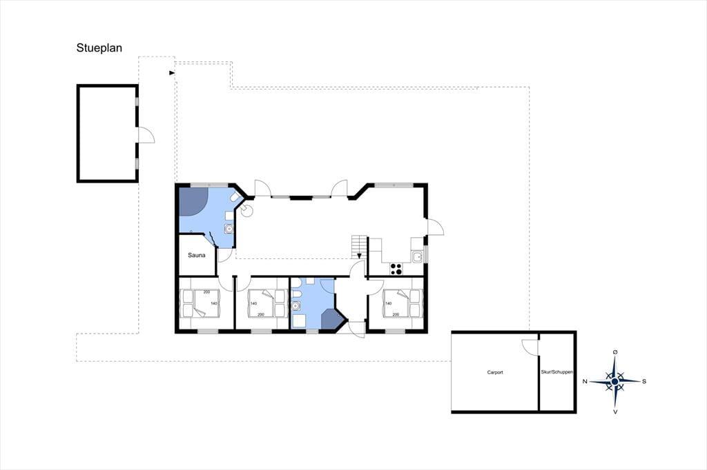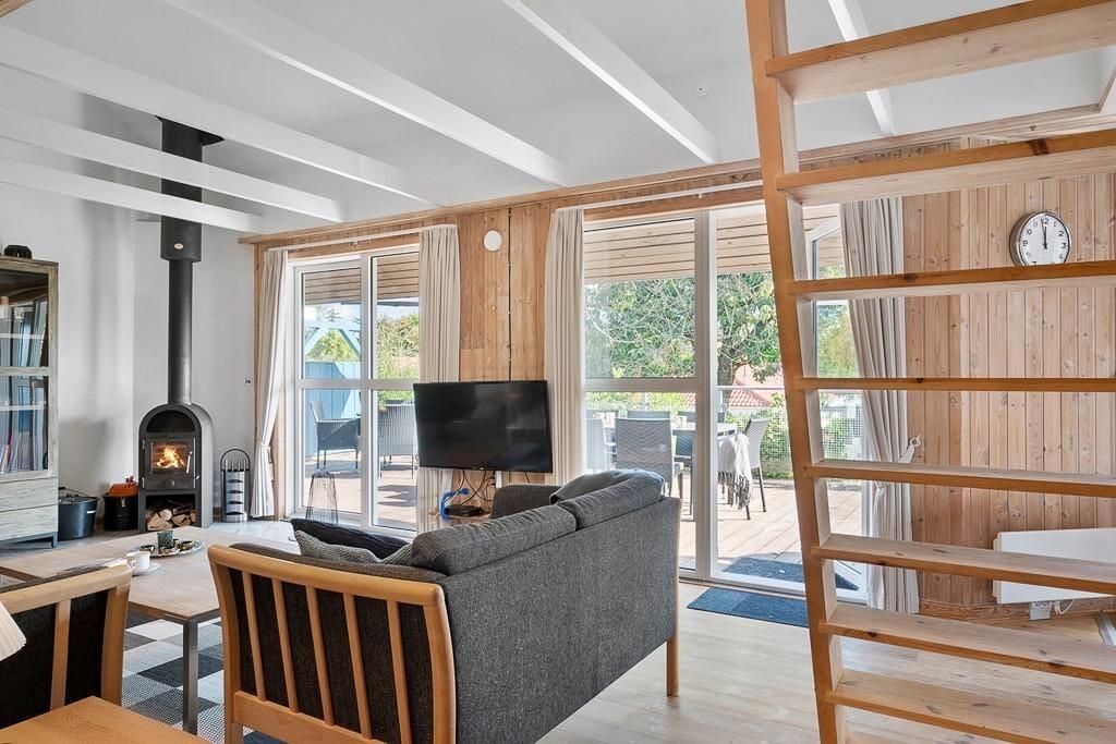 Indenfor mødes du af en lys og hyggelig atmosfære, der straks får skuldrene til at sænke sig. Husets indretning er enkel og hjemlig, så du hurtigt føler dig godt tilpas. I stuen kan du samles med familien foran den knitrende brændeovn, der spreder varme og ægte sommerhushygge, mens lyset strømmer ind gennem vinduerne. Det åbne køkken-alrum skaber de perfekte rammer for fælles måltider, brætspil og lange samtaler, der fortsætter langt ud på aftenen. Badeværelset byder på wellness i form af både sauna og spabad – en skøn måde at slutte dagen af på, hvad enten du har været ude at bade i havet eller på tur i området.