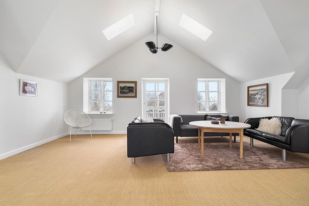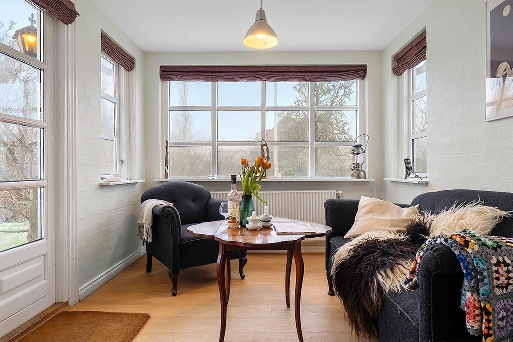 Når du træder indenfor i denne lyse og hyggelige villa, mærker du straks den afslappede stemning. Den indbydende stue åbner sig mod store vinduespartier, hvor udsigten til både Hejlsminde Bugt og det fredede område Hejlsminde Nor bliver en naturlig del af indretningen. Lyset strømmer ind og skaber en behagelig atmosfære, som indbyder til afslapning. Det åbne køkken-alrum samler hele familien til fælles måltider og hyggelige stunder, og fra spisebordet kan du nyde synet af Hejlsminde Nor. Villaen er rummelig og velindrettet, så du straks føler dig hjemme – og her er god plads til både familie og venner.