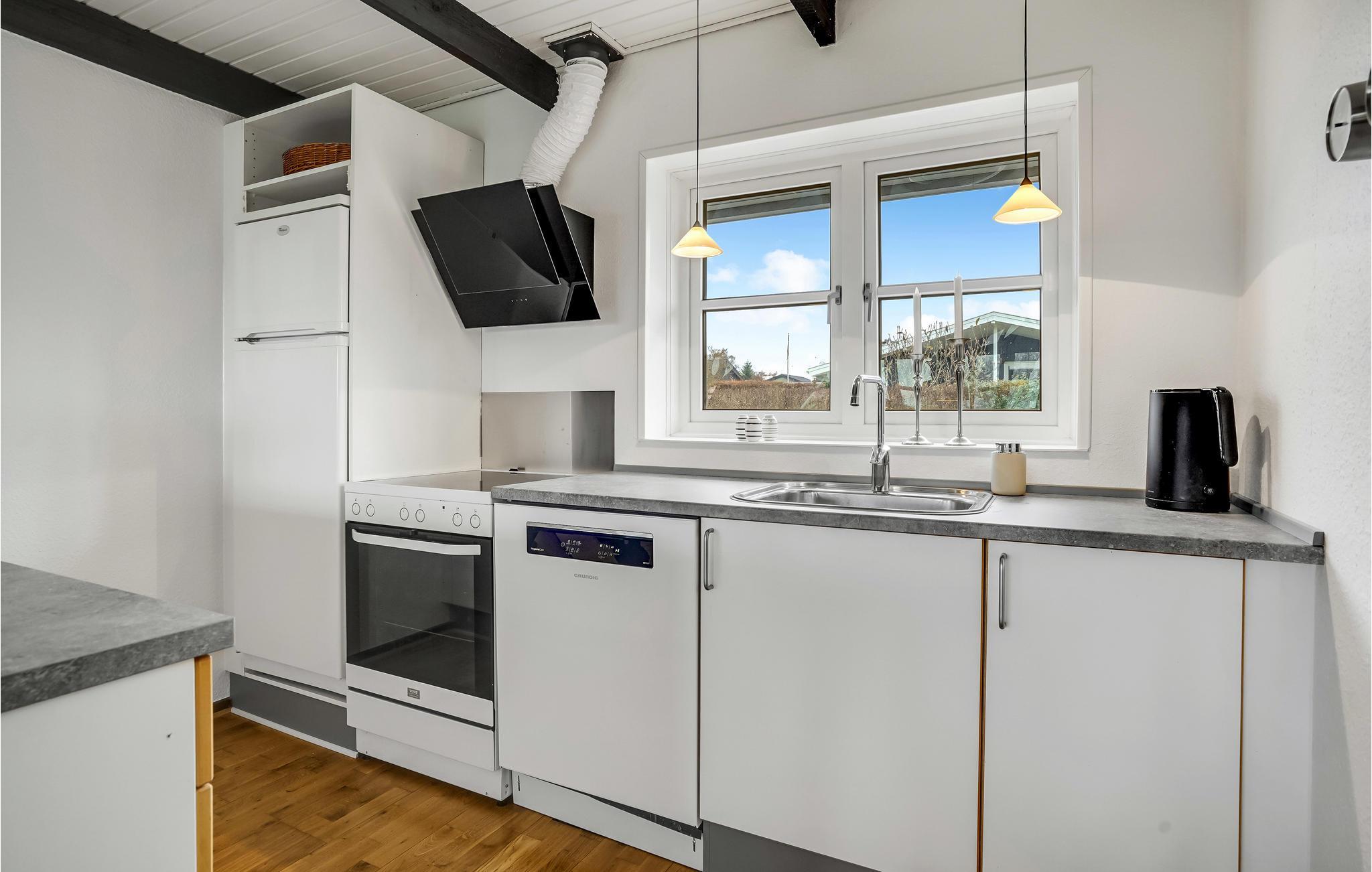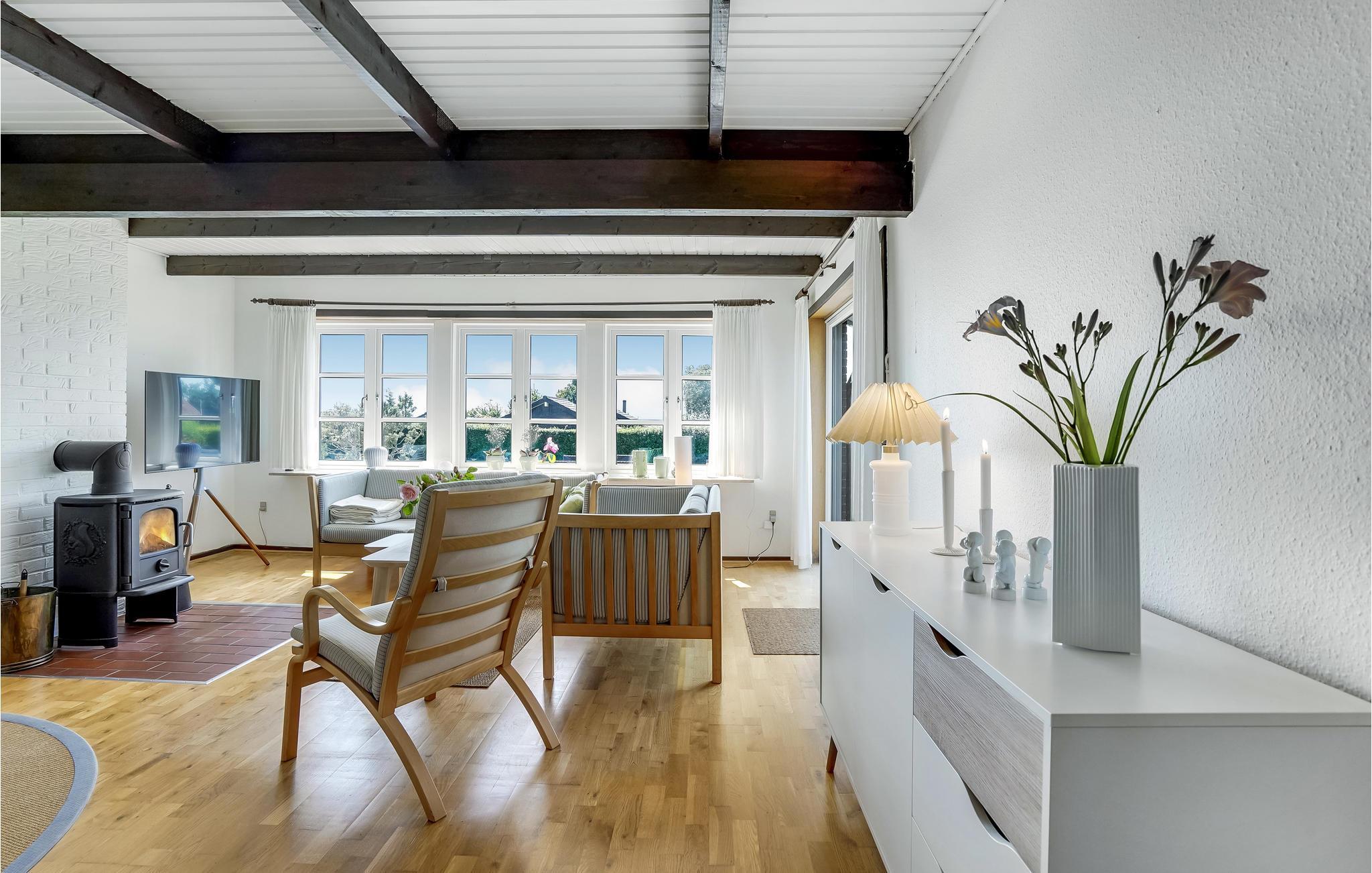 Dette klassiske nordiske feriehus i Hejsager ligger kun 150 meter fra den fine sandstrand. Fra den store flisebelagte terrasse kan man dufte havluften og får straks lyst til at hoppe i det kølige vand. Om aftenen kan I tænde op i brændeovnen og hygge jer i den komfortable sofa for at se en god film.