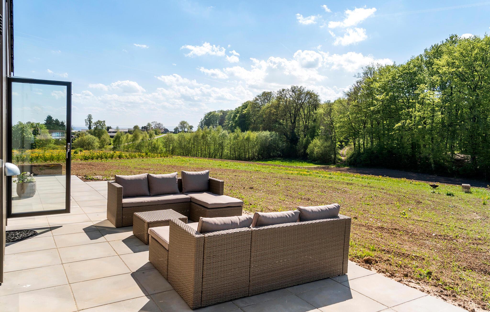 Hyggeligt feriehus nær Hejsager Strand med terrasse, bålplads og moderne faciliteter for en afslappende ferie.