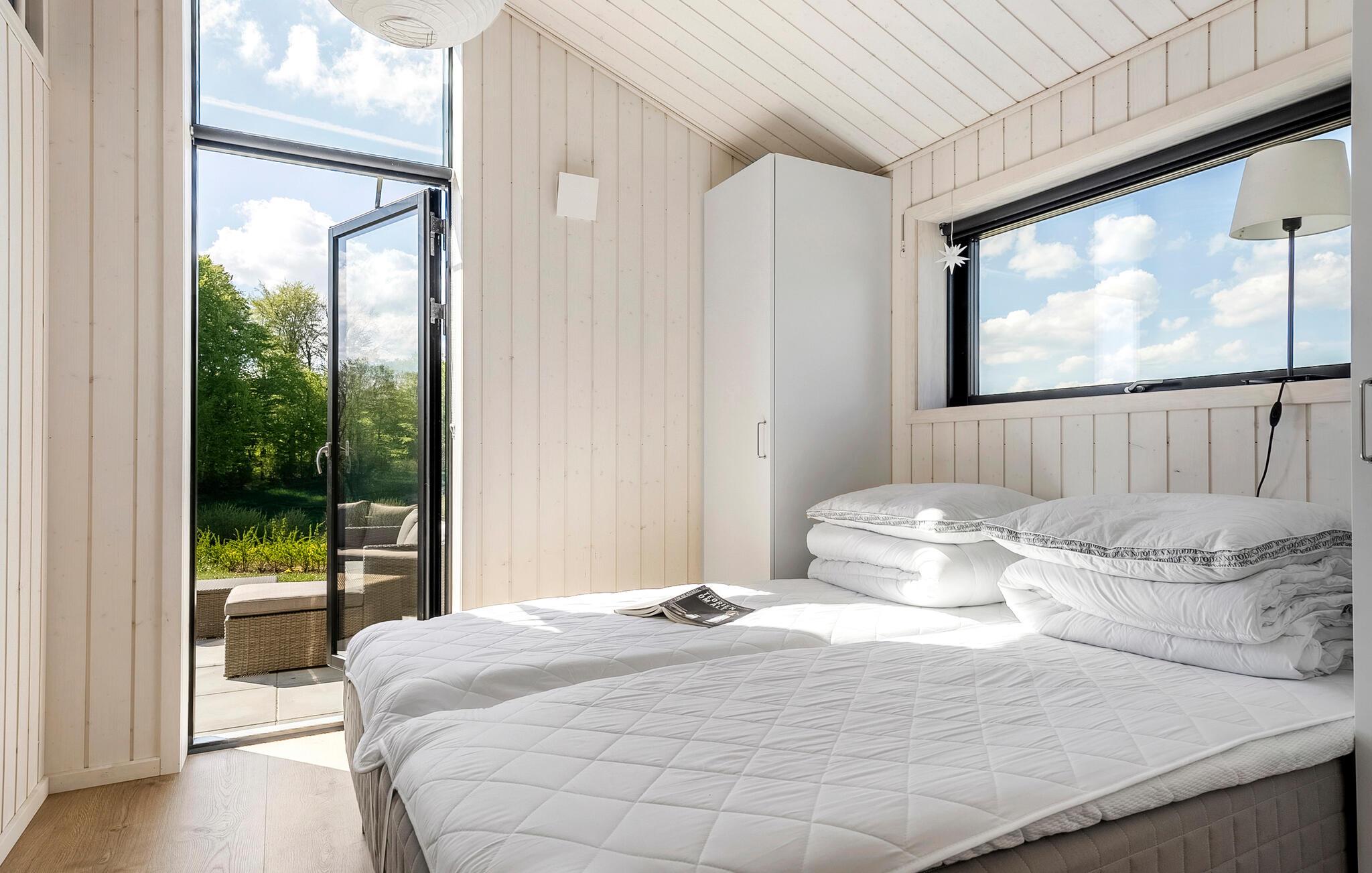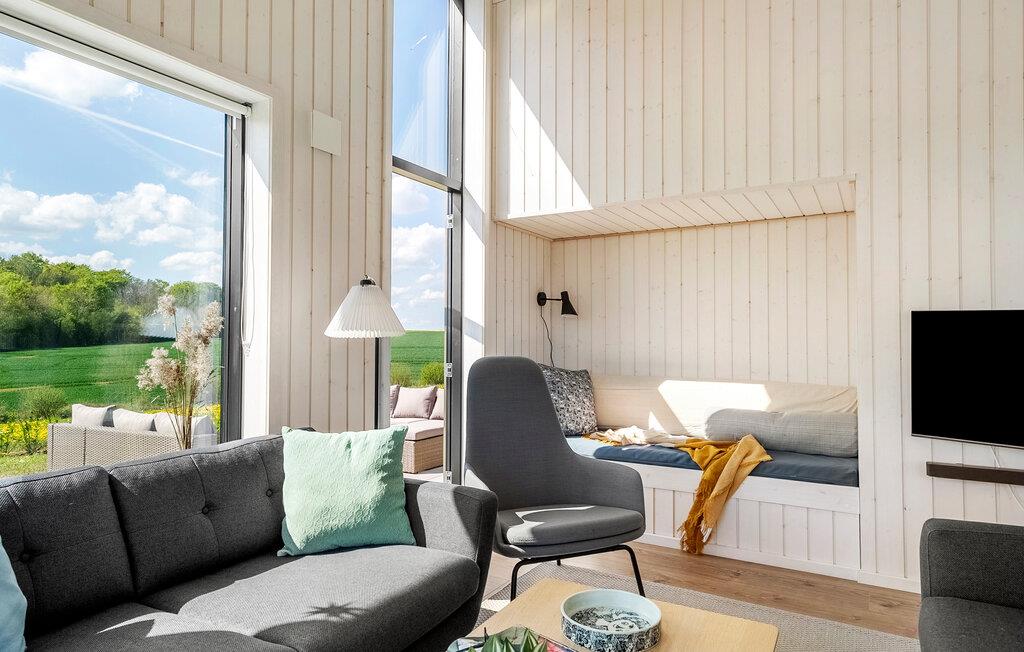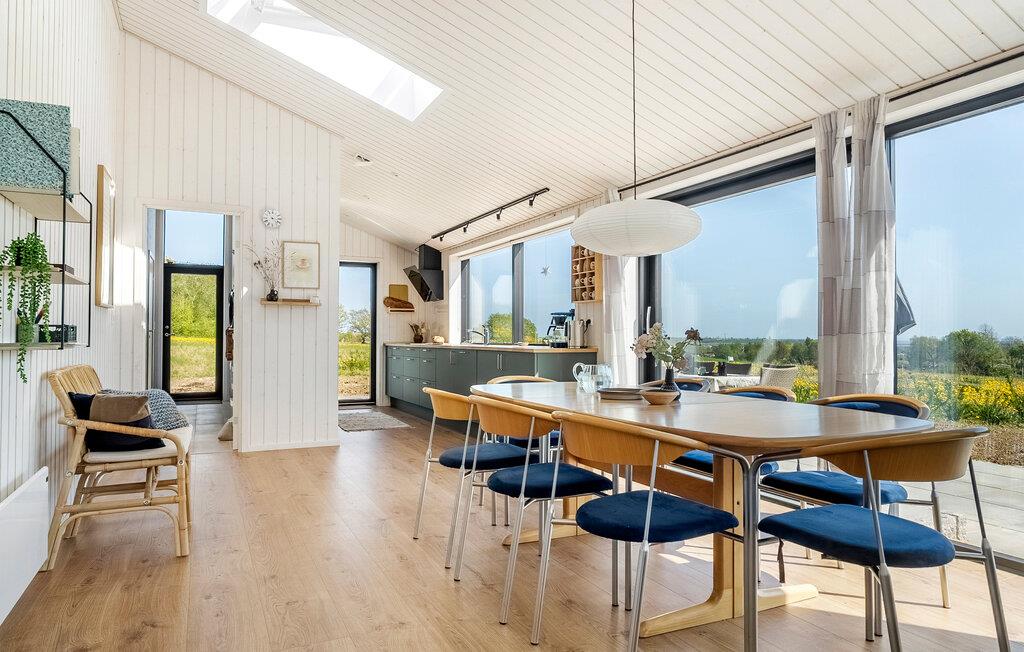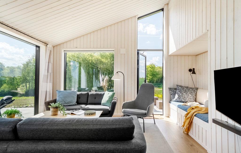 Jeres charmerende feriehus danner den ideelle ramme om ubekymrede feriedage med familien. Den åbne ruminddeling med store vinduer skaber en lys og indbydende atmosfære. Opholdsområdet forener køkken, spiseplads og sofahjørne på harmonisk vis – perfekt til fælles madlavning, måltider og hyggelige aftener med film eller sjove spil.