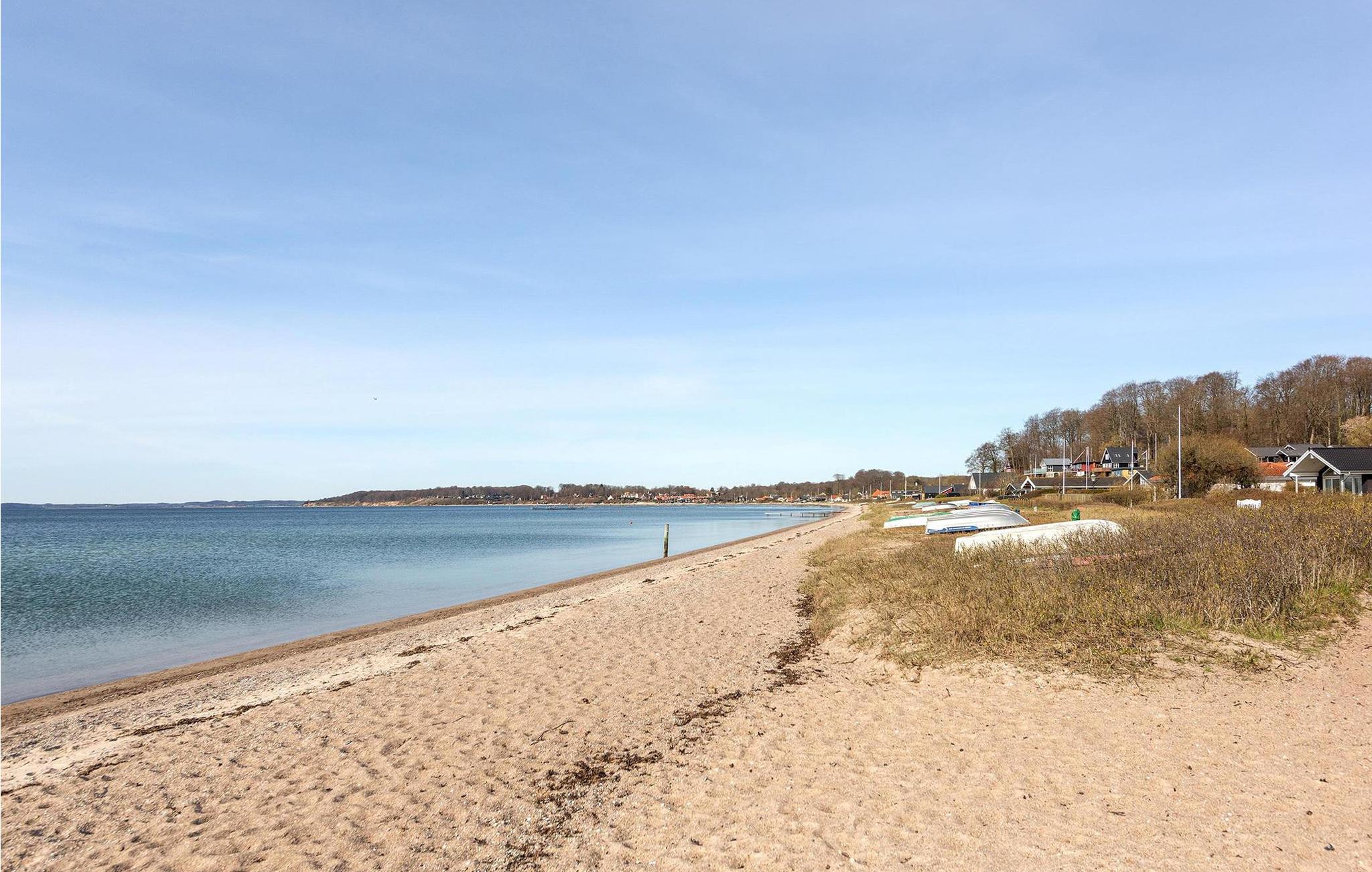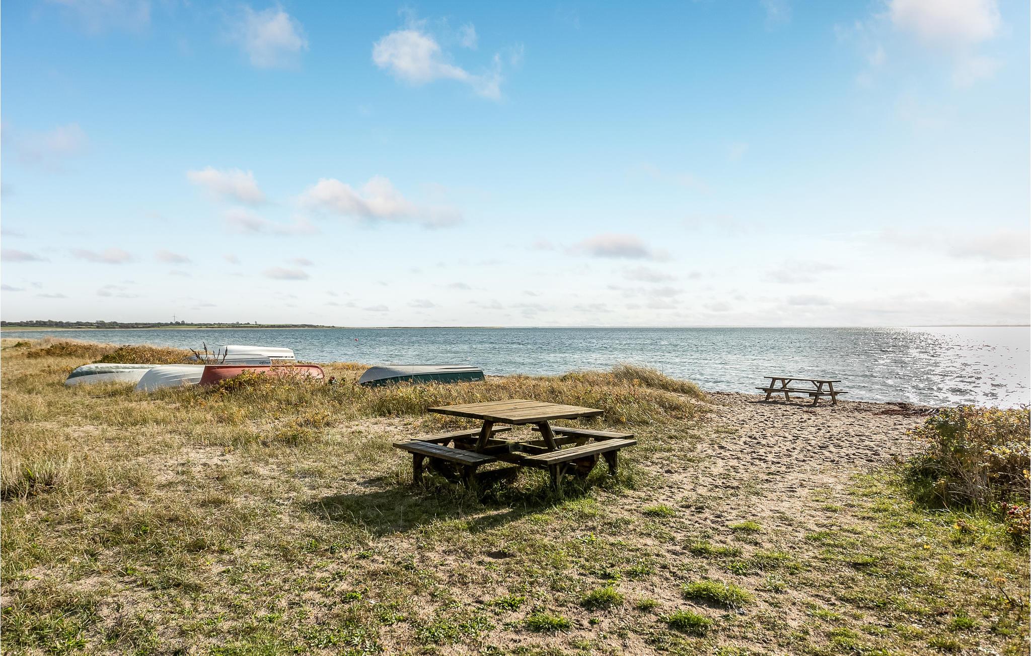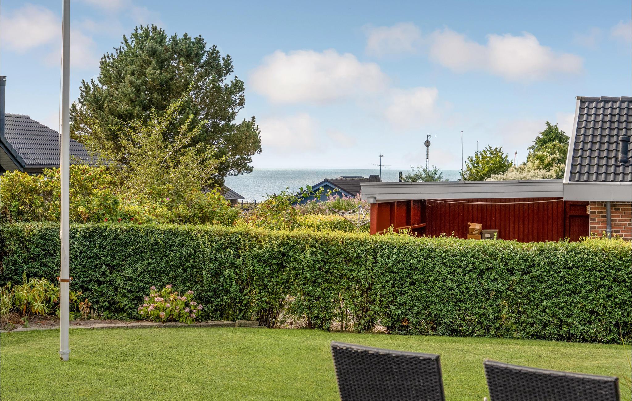 Der er en tilhørende stor have. Ikke langt fra huset ligger der en stor fælles legeplads, hvor børnene rigtig kan boltre sig. Fra stuen, terrassen og køkkenet kan I se havet, og kun 300 m fra huset ligger den fineste børnevenlige sandstrand.