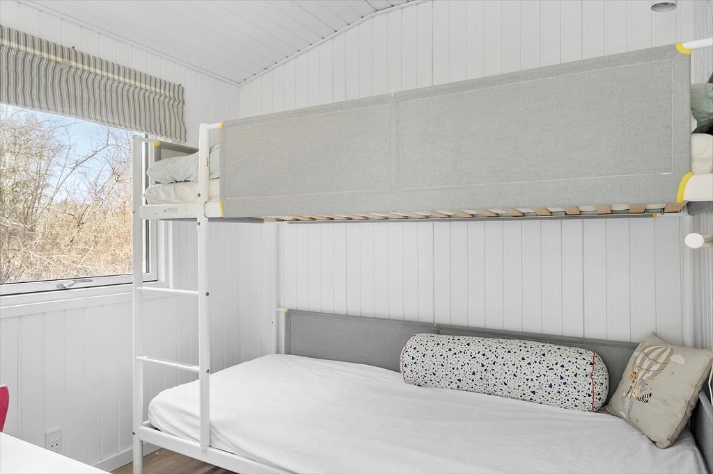 Efter en omfattende renovering i 2022 fremstår sommerhuset lyst og indbydende. Moderne interiør pryder rummene – blandt andet et flot køkken og en brændeovn med kig til flammerne – og de 77 m2 er godt udnyttet, så huset nemt kan rumme seks personer. Ud over tre gode soveværelser og et mindre, men velindrettet badeværelse byder sommerhuset på en dejlig opholdsafdeling med køkken og stue i åben forbindelse. Herfra kan I fortsætte videre ud i en havestue, der med store vinduespartier og fin udsigt til naturgrunden hurtigt kan blive jeres foretrukne plads, når I vil spise frokost eller spille brætspil.