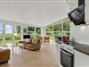 Da sommerhuset blev opført i 2015, blev det selvfølgelig udstyret med store glaspartier i stuen, så du kan mærke nærheden til naturen og få glæde af det smukke sollys – selv på de dage, hvor du har mest lyst til at hygge inden døre. Hvis du kan løsrive blikket fra Kattegat, er der fladskærms-tv i stuen, og en brændeovn står klar til at sprede både varme og hygge, når vejret indbyder til det. Et veludstyret køkken ligger i åben forbindelse med stuen, og ikke bare her, men også på badeværelset og de to soveværelser er indretningen lys og let, så rummene emmer af sommerlig feriestemning.