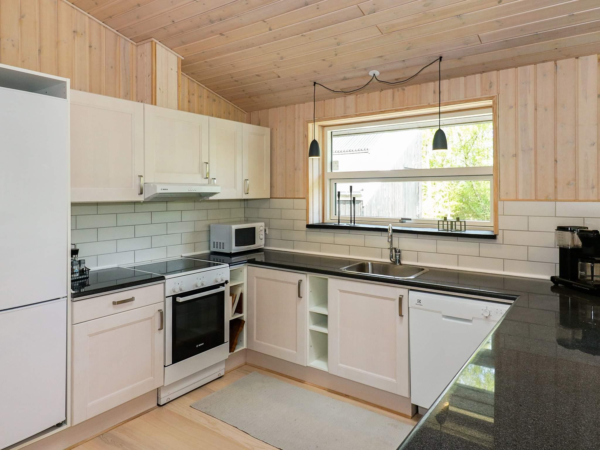 Sommerhus med spabad og sauna beliggende få minutters gang fra havet i et naturskønt og roligt område ved Helberskov. Lys stue med højt til loftet og i åben forbindelse med stort køkken og god spiseplads. Der er tre gode soveværelser med dobbeltsenge, hems med madrasser og to badeværelser, hvoraf det ene er med spabad og sauna. Fra stuen er der udgang til en delvist overdækket terrasse, Huset ligger i et naturskønt område med skov, hav og fjord med gode fiskemuligheder. Udlejes ikke til ungdomsgrupper.