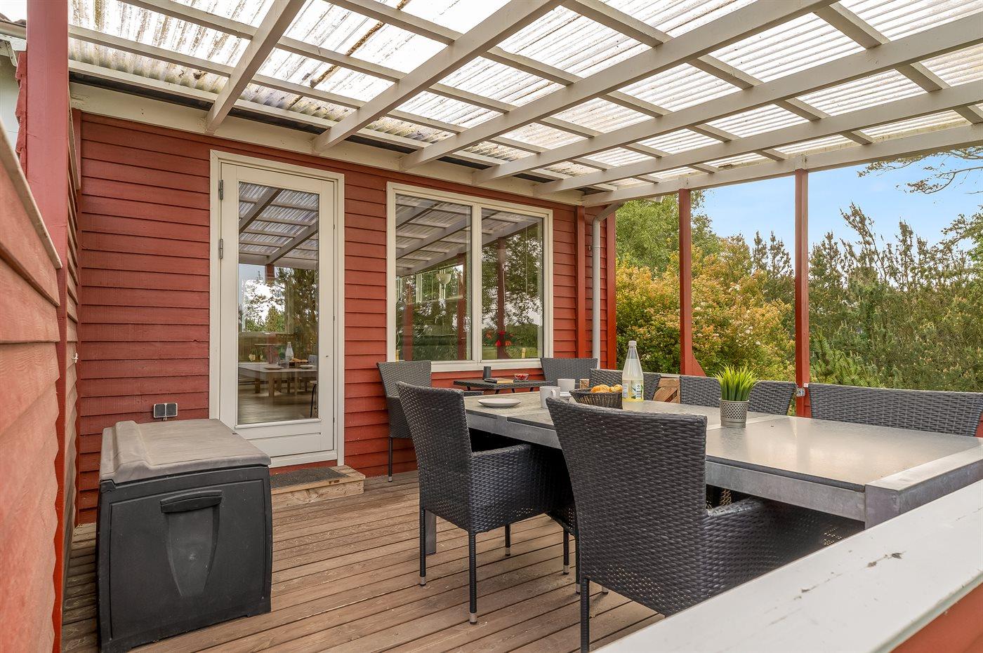 Ferieboligen er beliggende på en 1114 m² stor naturgrund. Der er 400 m til havet. Nærmeste forretning er beliggende i en afstand af 2000 m. Der er en golfbane i en afstand af 20000 m. Til ferieboligen hører 14 m² terrasseareal. Desuden er der 14 m² overdækket terrasse. Der er redskabsrum. Gynge. Sandkasse. Parkering ved ferieboligen.