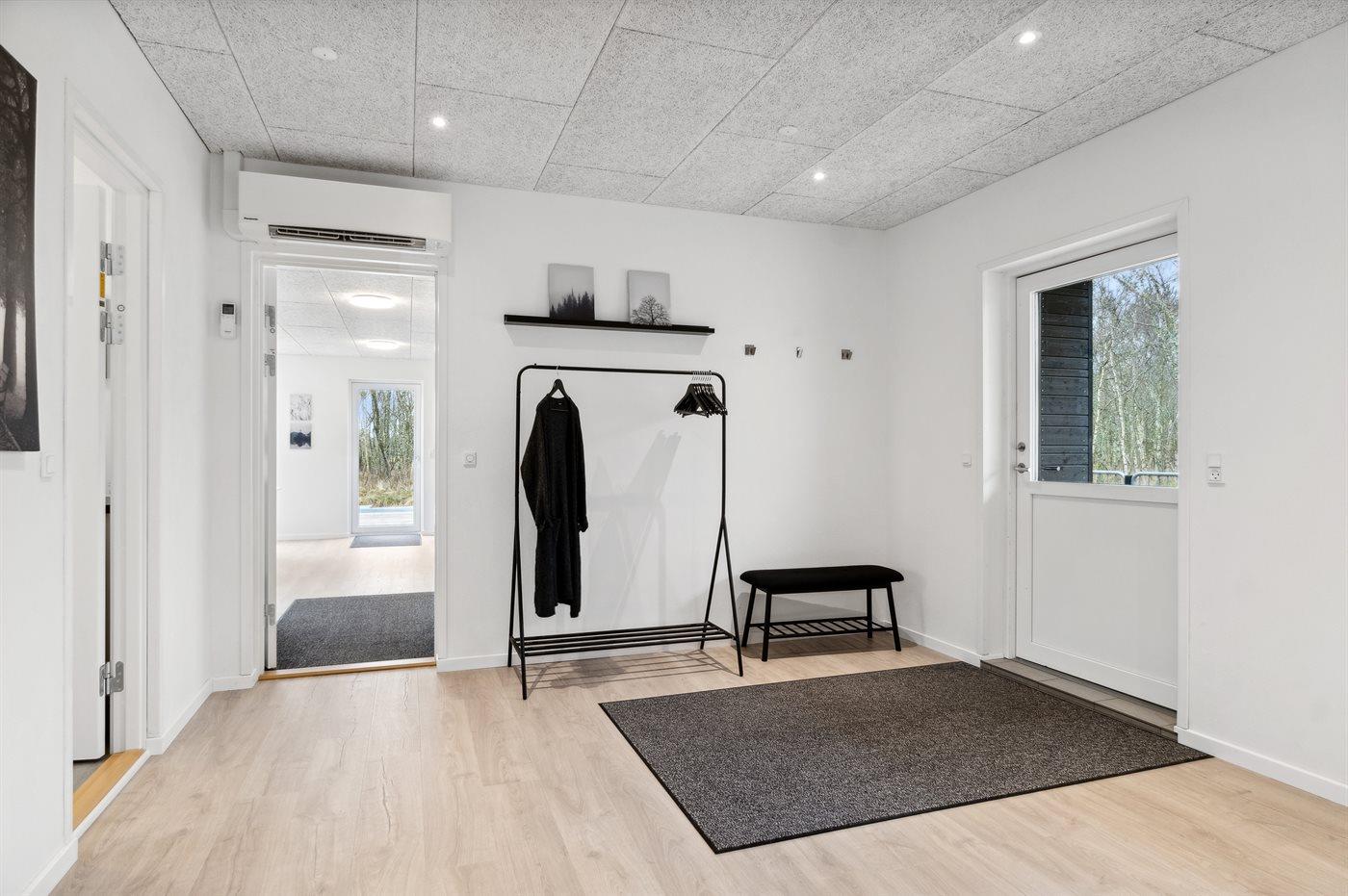 Ferieboligen er beliggende på en 2517 m² stor naturgrund. Der er 360 m til havet. Der er 1800 m til fjorden. Nærmeste forretning er beliggende i en afstand af 4500 m. Der er en golfbane i en afstand af 13170 m. Til ferieboligen hører 100 m² terrasseareal. Til ferieboligen hører åbent terrasseareal. Desuden er der overdækket terrasse. Grill til rådighed. Parkering ved ferieboligen.