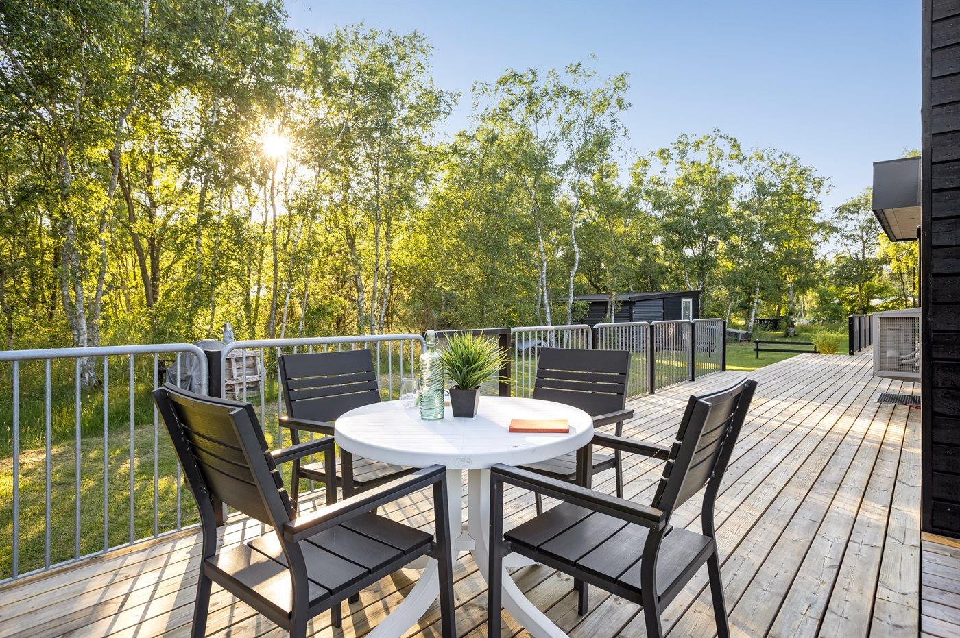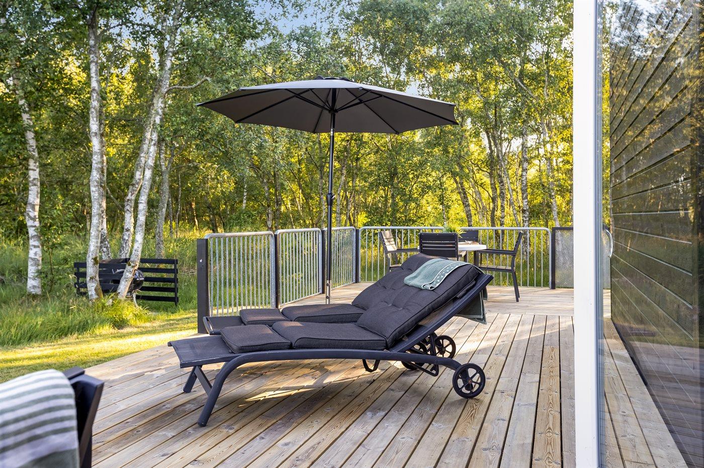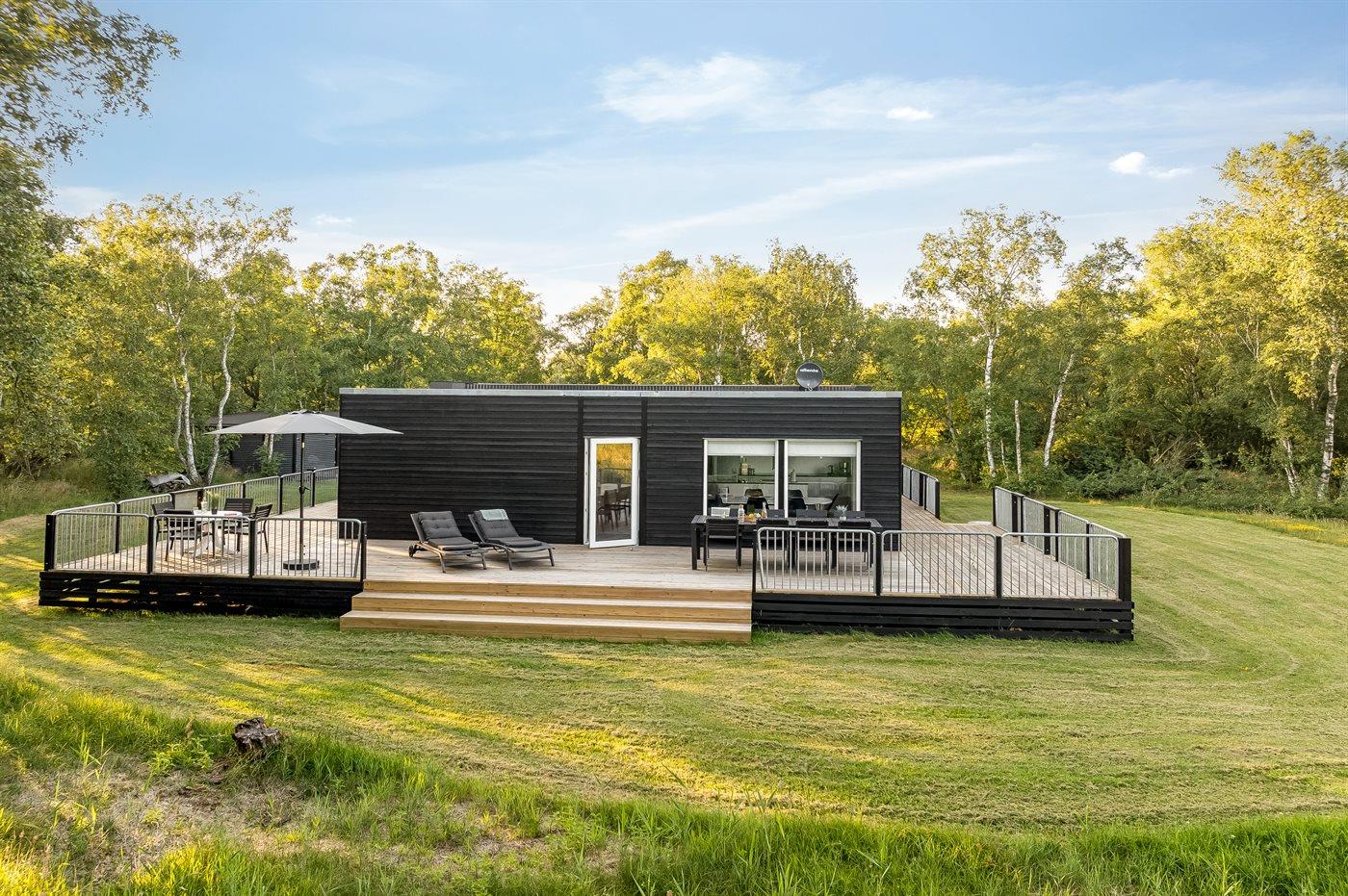 Charmerende sommerhus fra 2023 med havudsigt, stor terrasse og moderne faciliteter i naturskønne Helberskov.