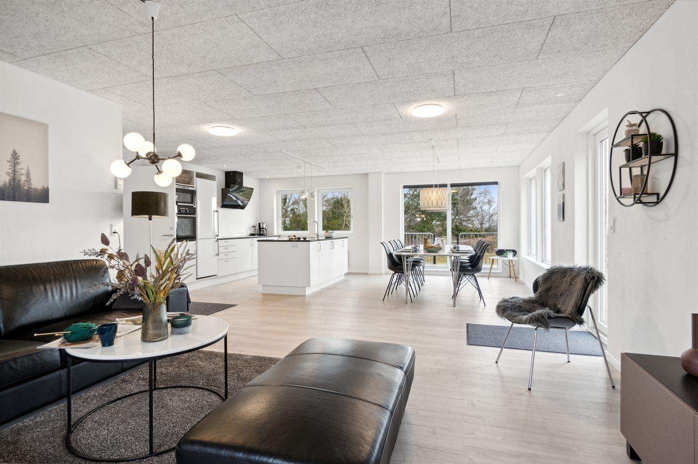 Dette charmerende sommerhus er beliggende på en skøn naturgrund med udsigt til havet samt skov og enge. Stedet indbyder til et liv i harmoni med naturen. Ved ankomsten mødes du af en indbydende atmosfære, hvor den åbne planløsning og de store vinduespartier inviterer lyset ind i huset og skaber følelsen af rummelighed og velvære.