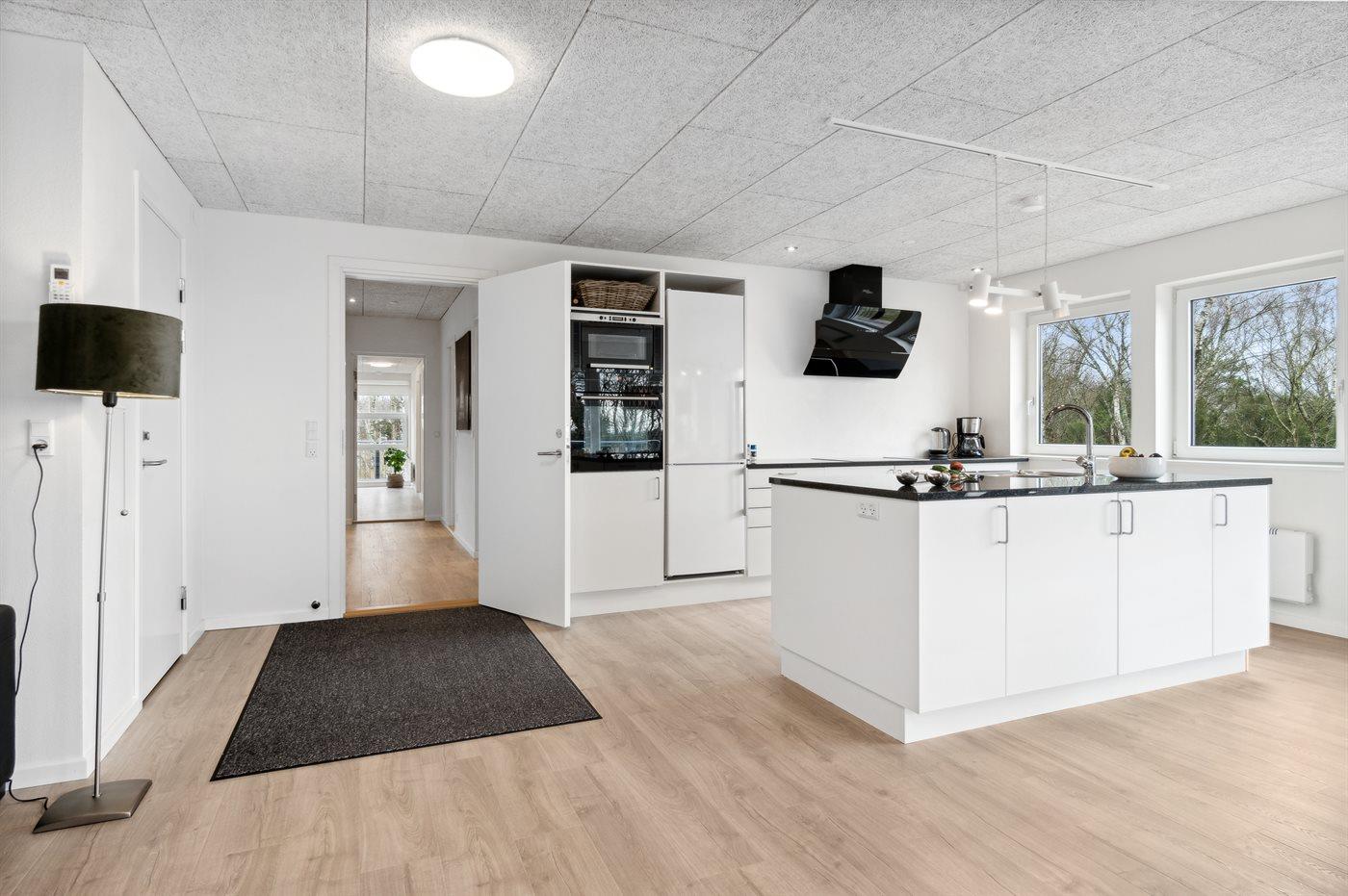 Køkkenet er udstyret med 1 køleskab. Der er 4 induktionskogeplader, varmluftovn, mikrobølgeovn samt opvaskemaskine.