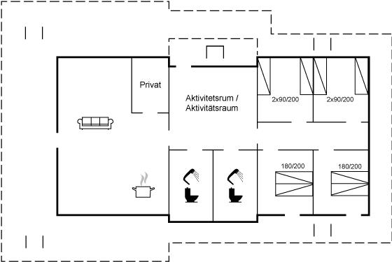 Der er i alt 4 soveværelser. Sovepladserne fordeler sig på: 4 sovepladser i dobbeltsenge. 4 sovepladser i enkeltsenge.