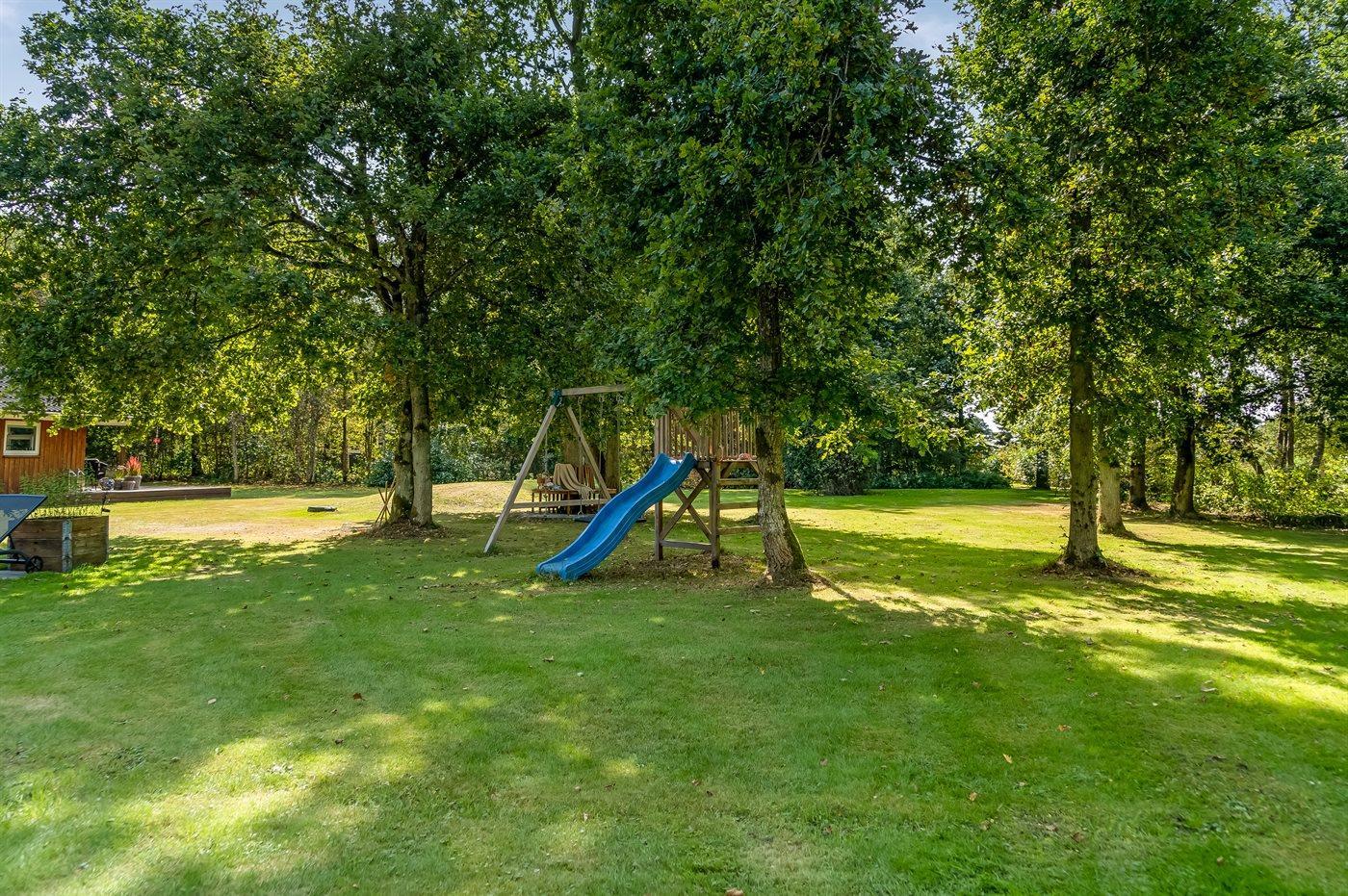 Huset ligger på en stor grund med gynge, bålplads og rigeligt med plads til leg og boldspil. De mange terrasser gør det muligt at følge solen hele dagen – og om aftenen kan I samle jer til hyggelige grillaftener i fredelige omgivelser.