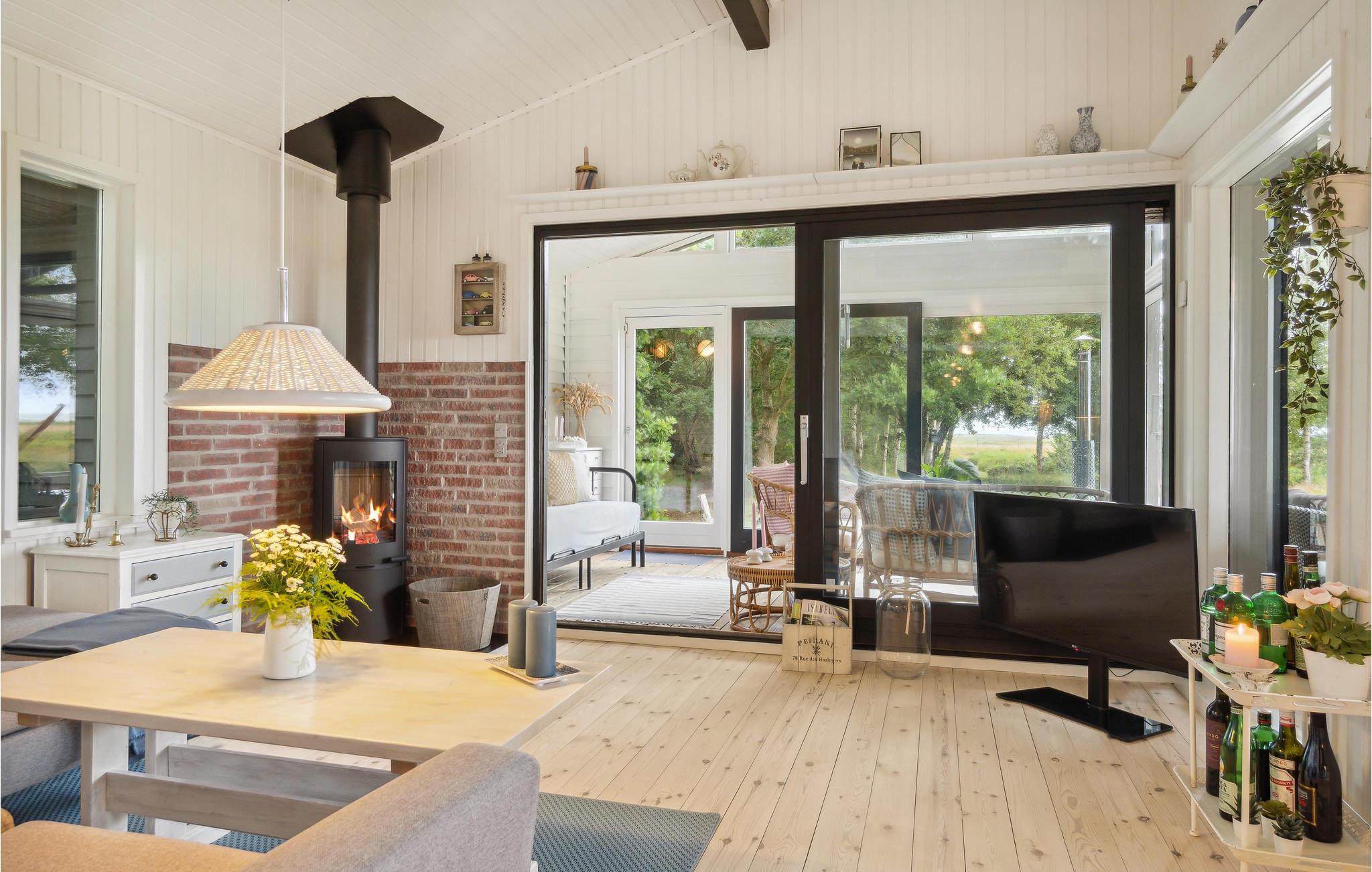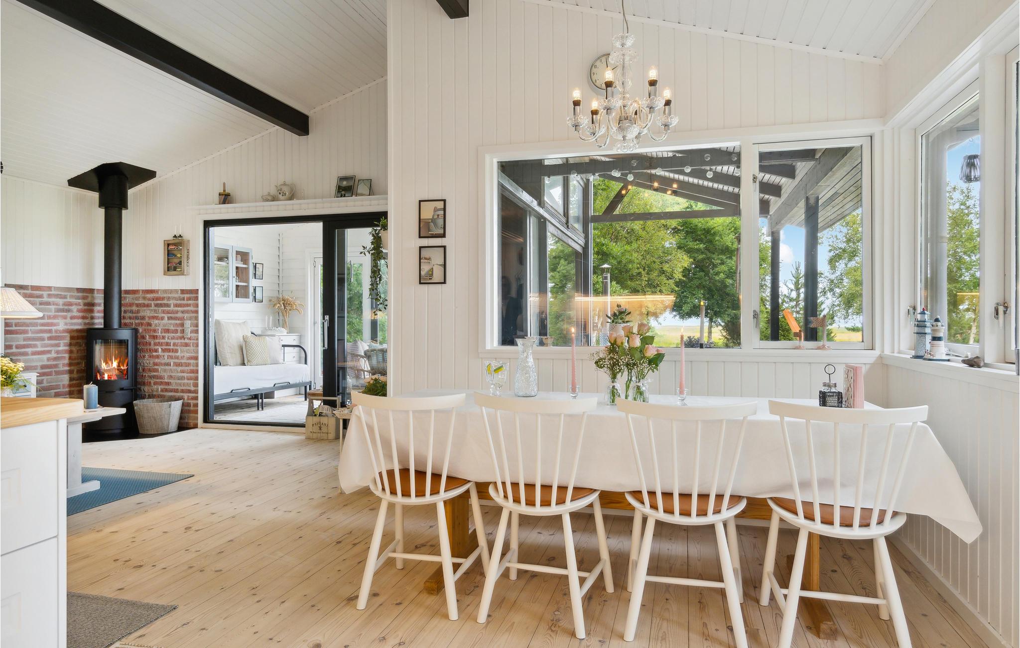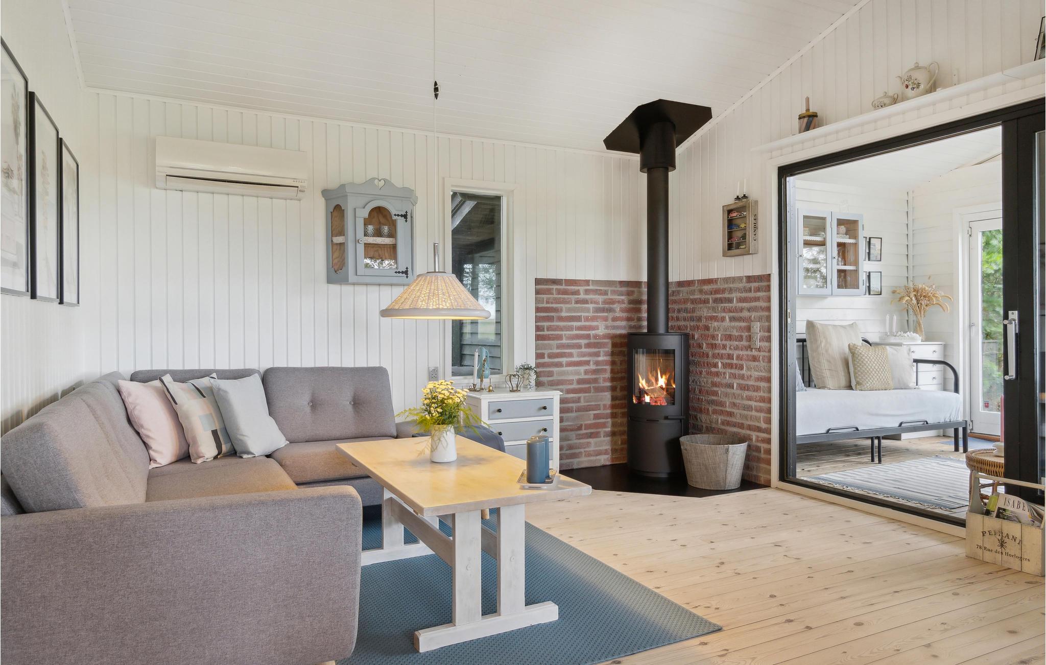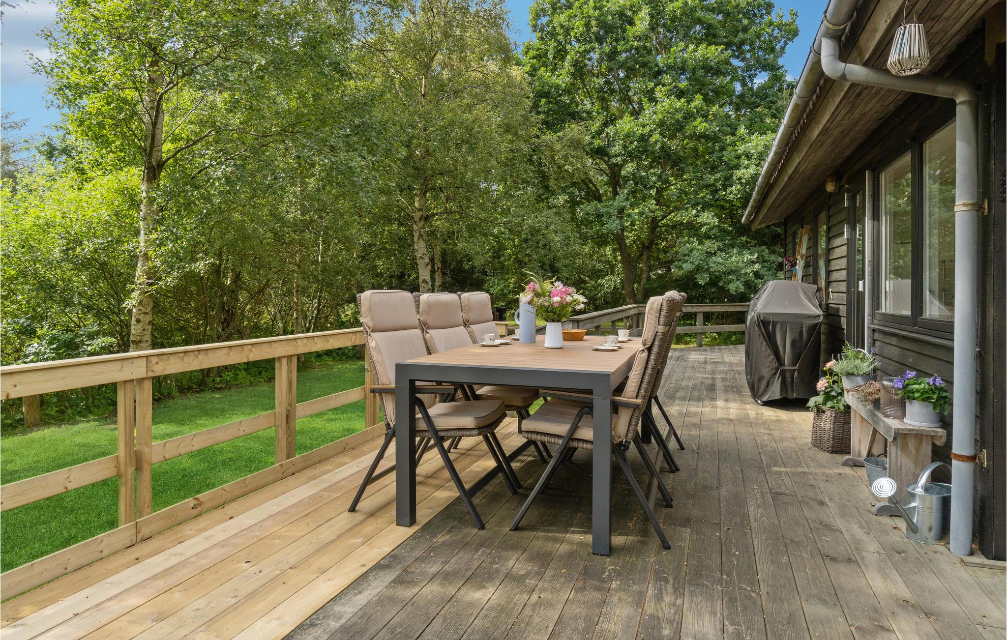 På solrige dage vil I helt sikkert tilbringe det meste af tiden ude på terrassen, mens børnene leger på græsplænen. Afslut senere en dejlig dag med snobrødsbagning ved bålstedet eller i vildmarksbadet, hvorfra I kan lade blikket glide henover vandet og solnedgangen.