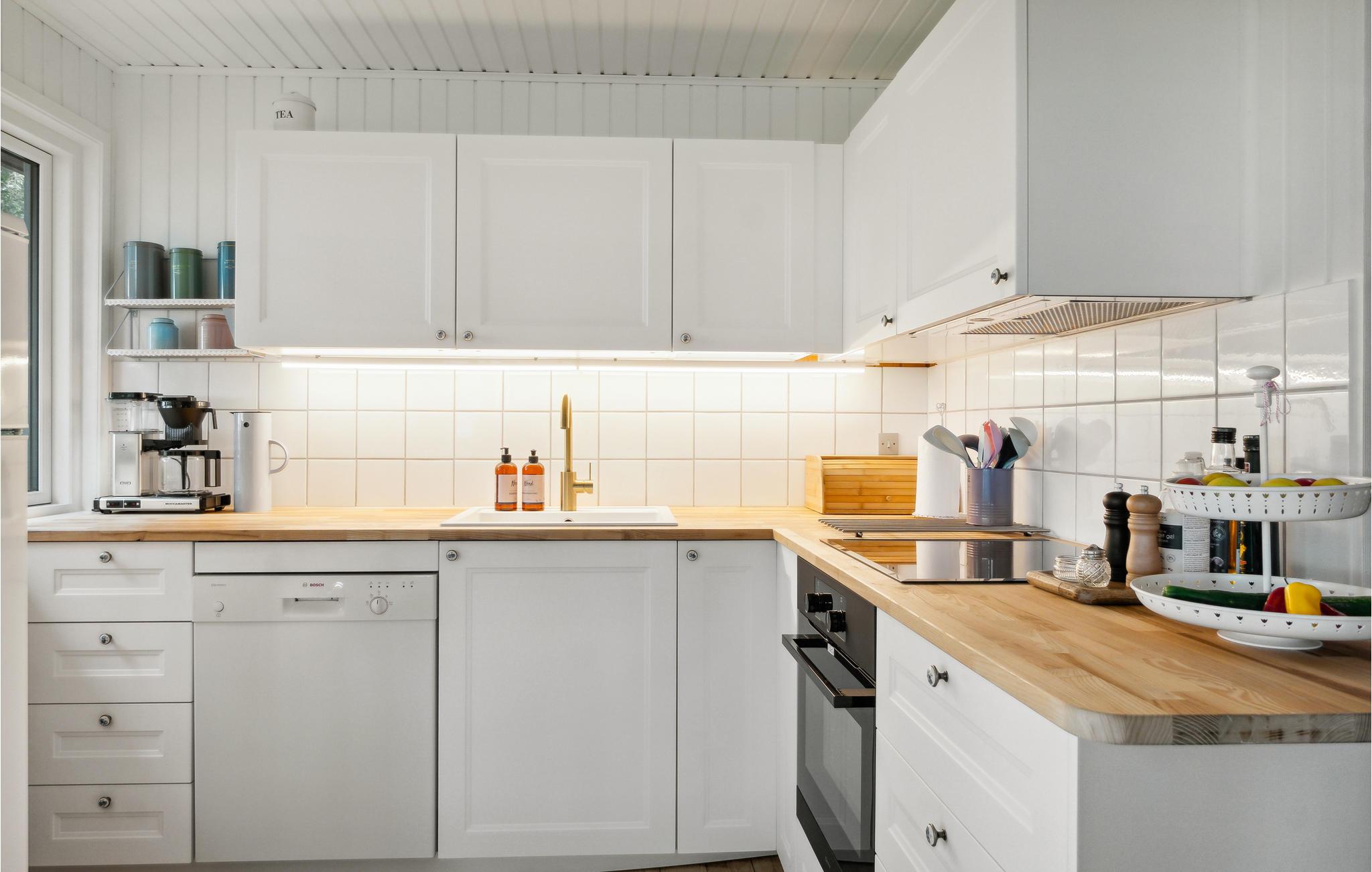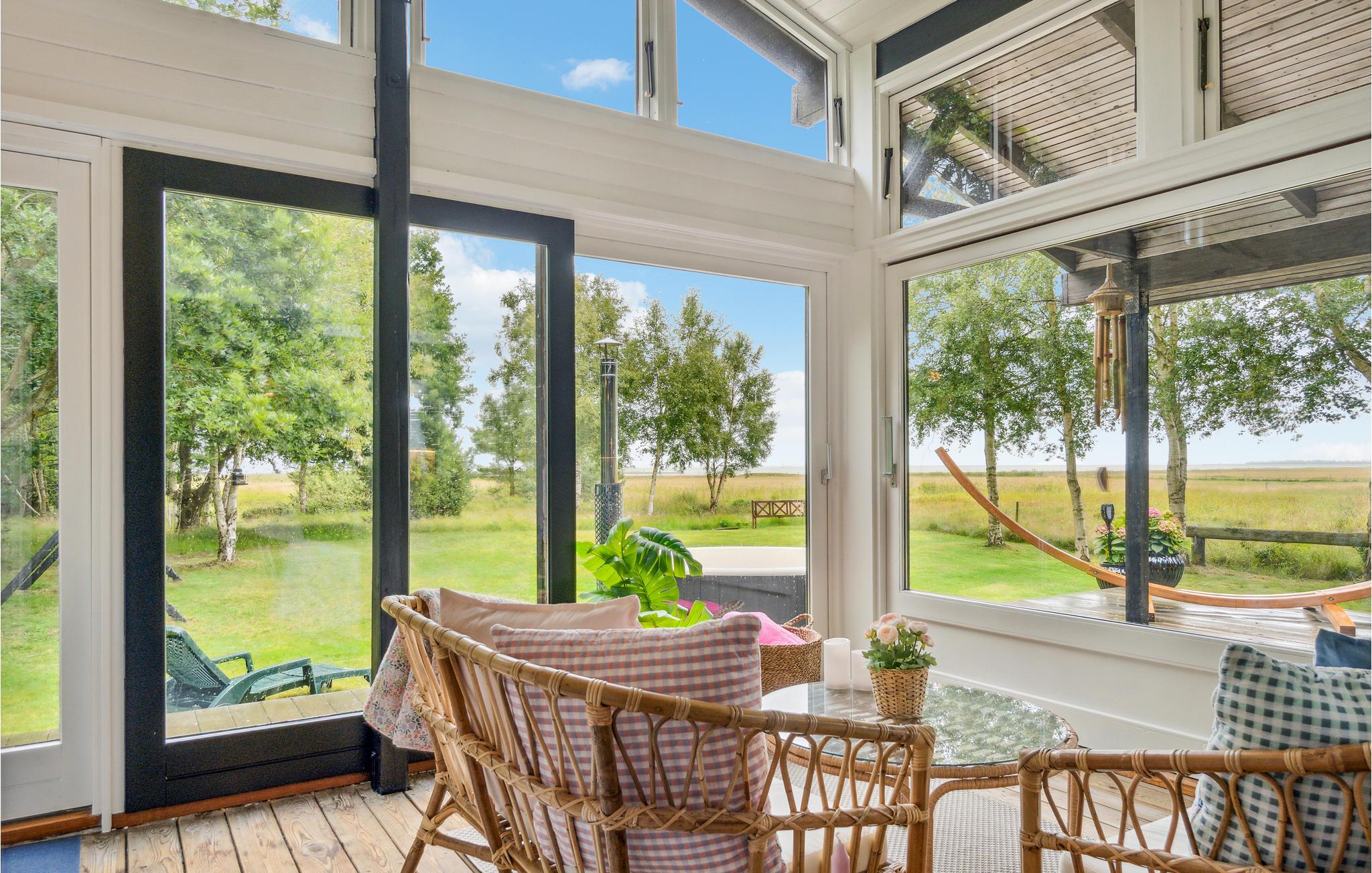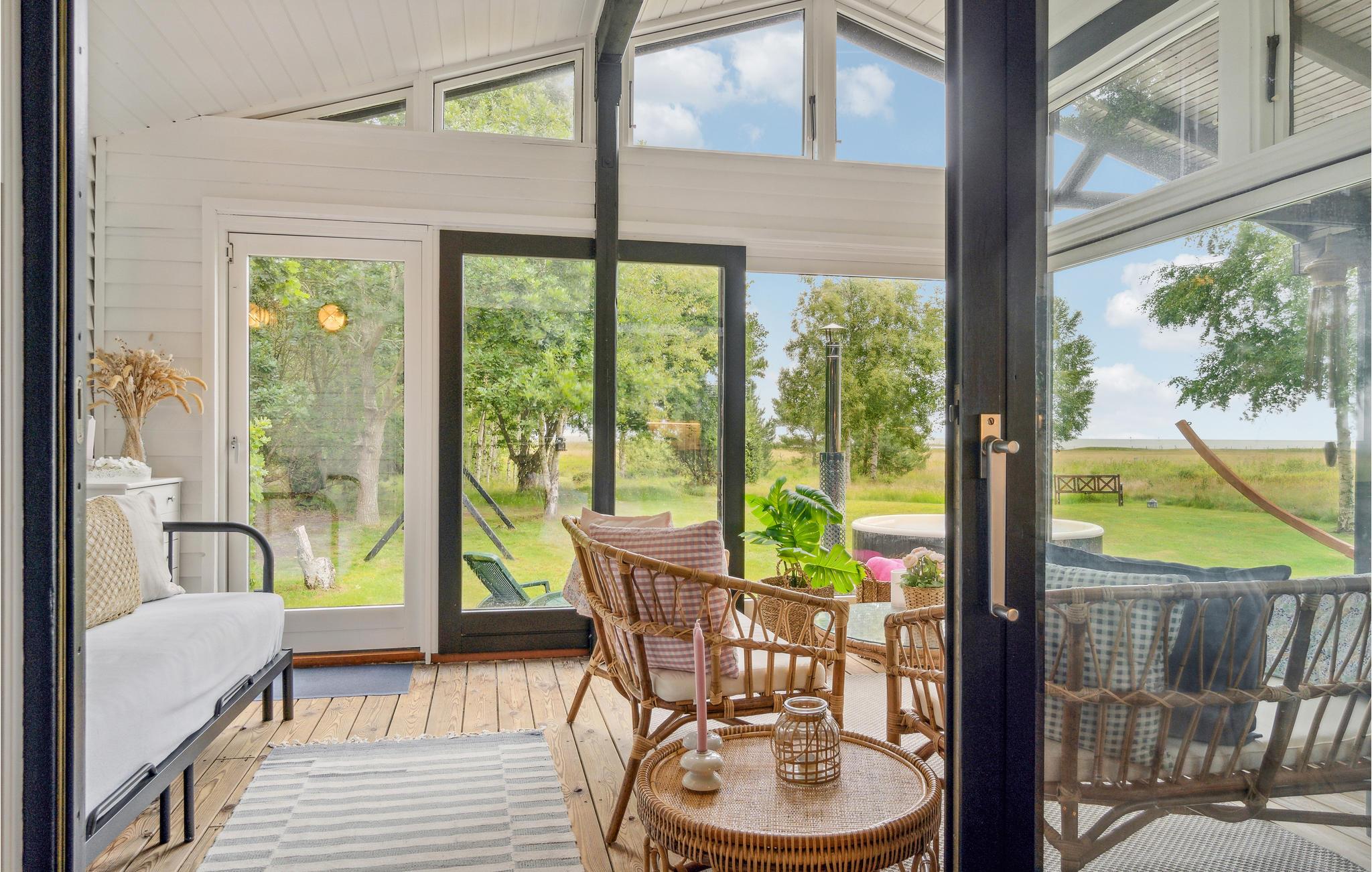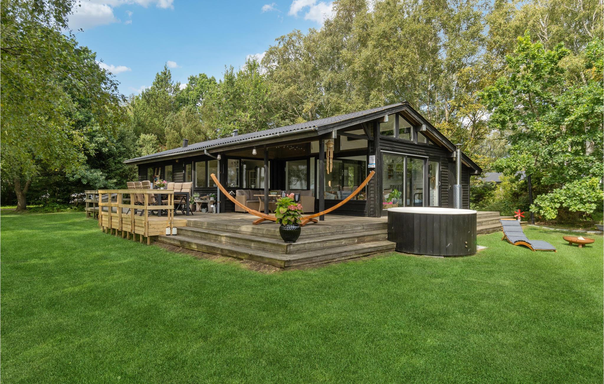 På solrige dage vil I helt sikkert tilbringe det meste af tiden ude på terrassen, mens børnene leger på græsplænen. Afslut senere en dejlig dag med snobrødsbagning ved bålstedet eller i vildmarksbadet, hvorfra I kan lade blikket glide henover vandet og solnedgangen.