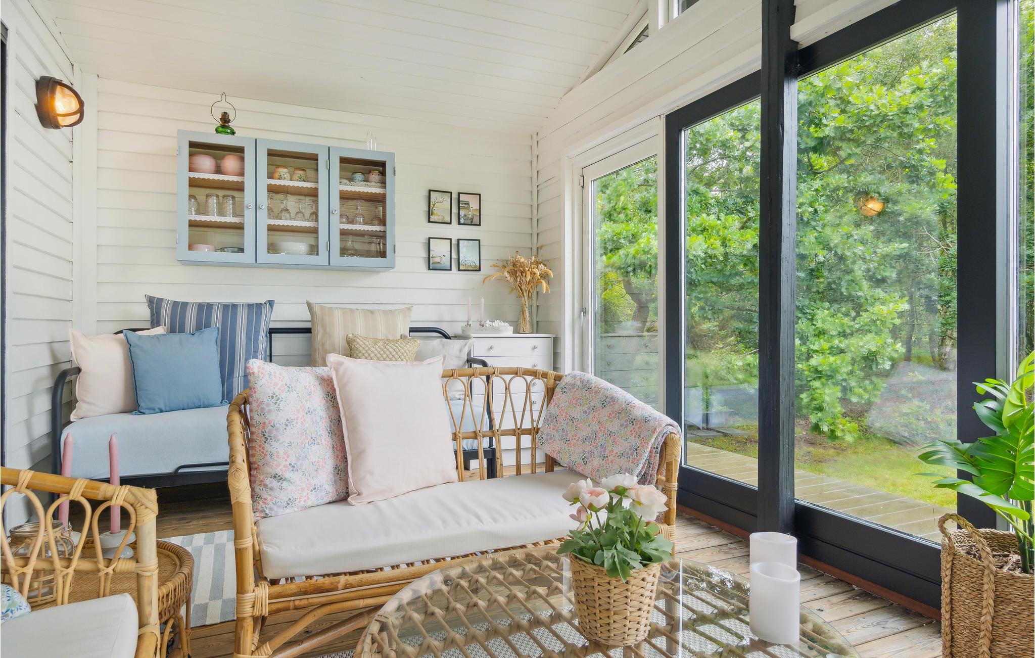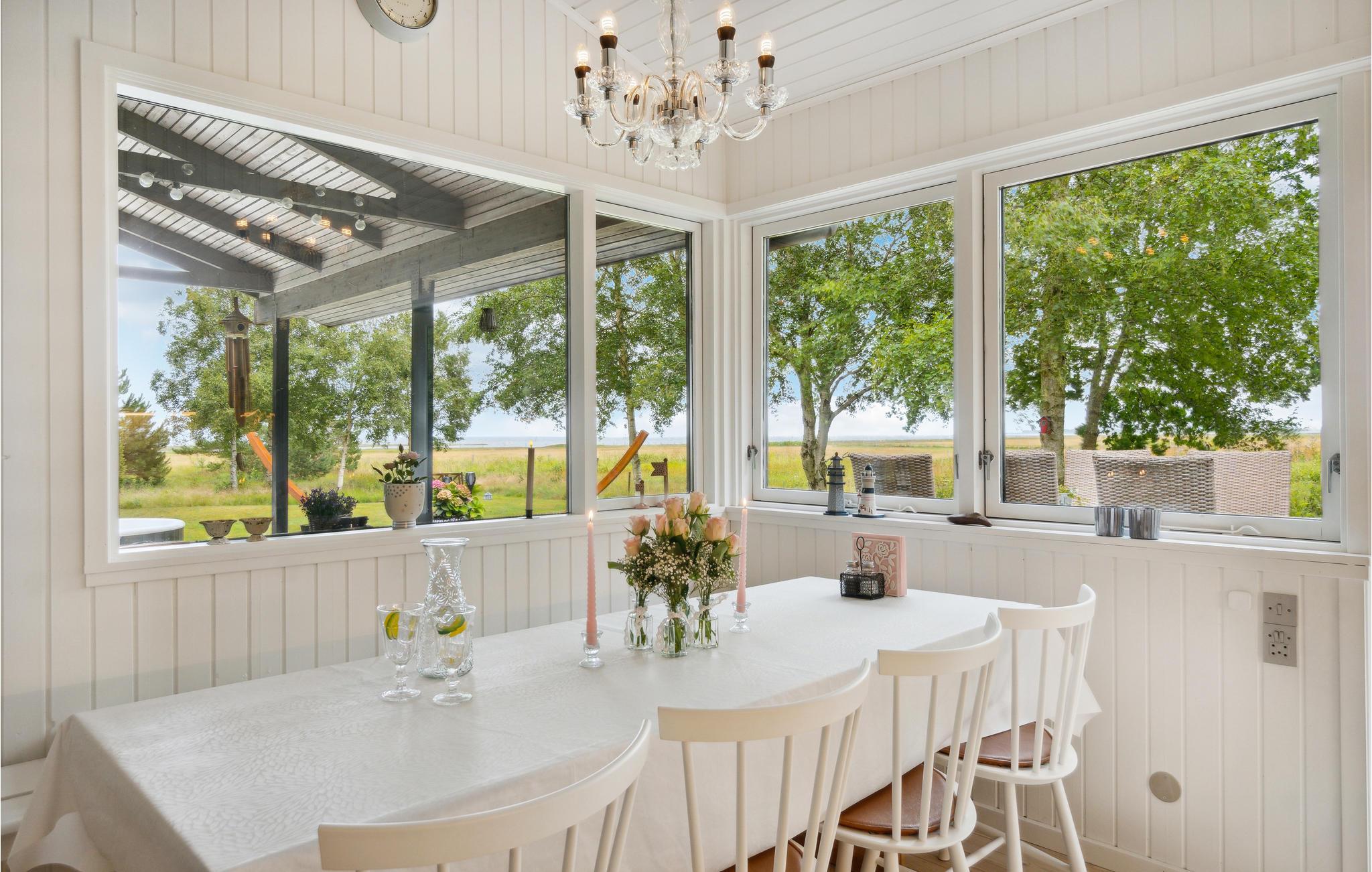 Dette smukke feriehus byder jer velkommen med attraktiv beliggenhed ved Kattegat. Indenfor venter jer en gennemtænkt indretning af høj kvalitet, der gør et smagfuldt og personligt indtryk. Takket være de mange store vinduespartier kan I nyde den vidunderlige udsigt, uanset om I sidder samlet rundt om spisebordet over lækre måltider eller slapper af i de forskellige sofaer. Tilbring hyggelige timer i udestuen med den bog, I længe har villet læse, og varm jer i de kolde årstider foran brændeovnen.