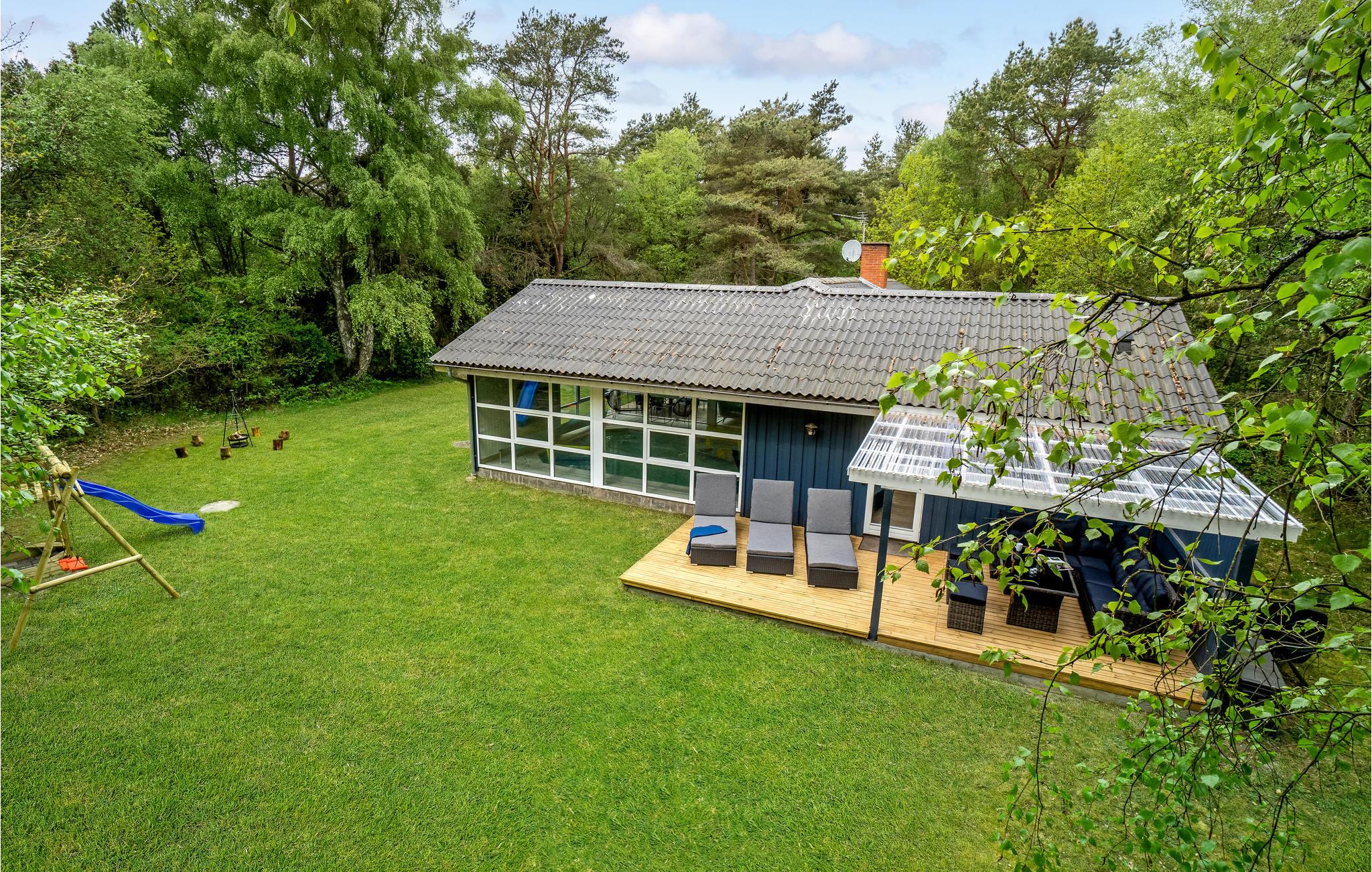 Til huset hører en dejlig terrasse, hvor I kan nyde ferien i fulde drag. Her kan I spise jeres morgenmad og nyde solen eller læse en god bog i løbet af dagen, mens børnene gynger eller leger i sandkassen på den store grund. Om aftenen kan I tænde op i grillen og tilberede et lækkert feriemåltid.