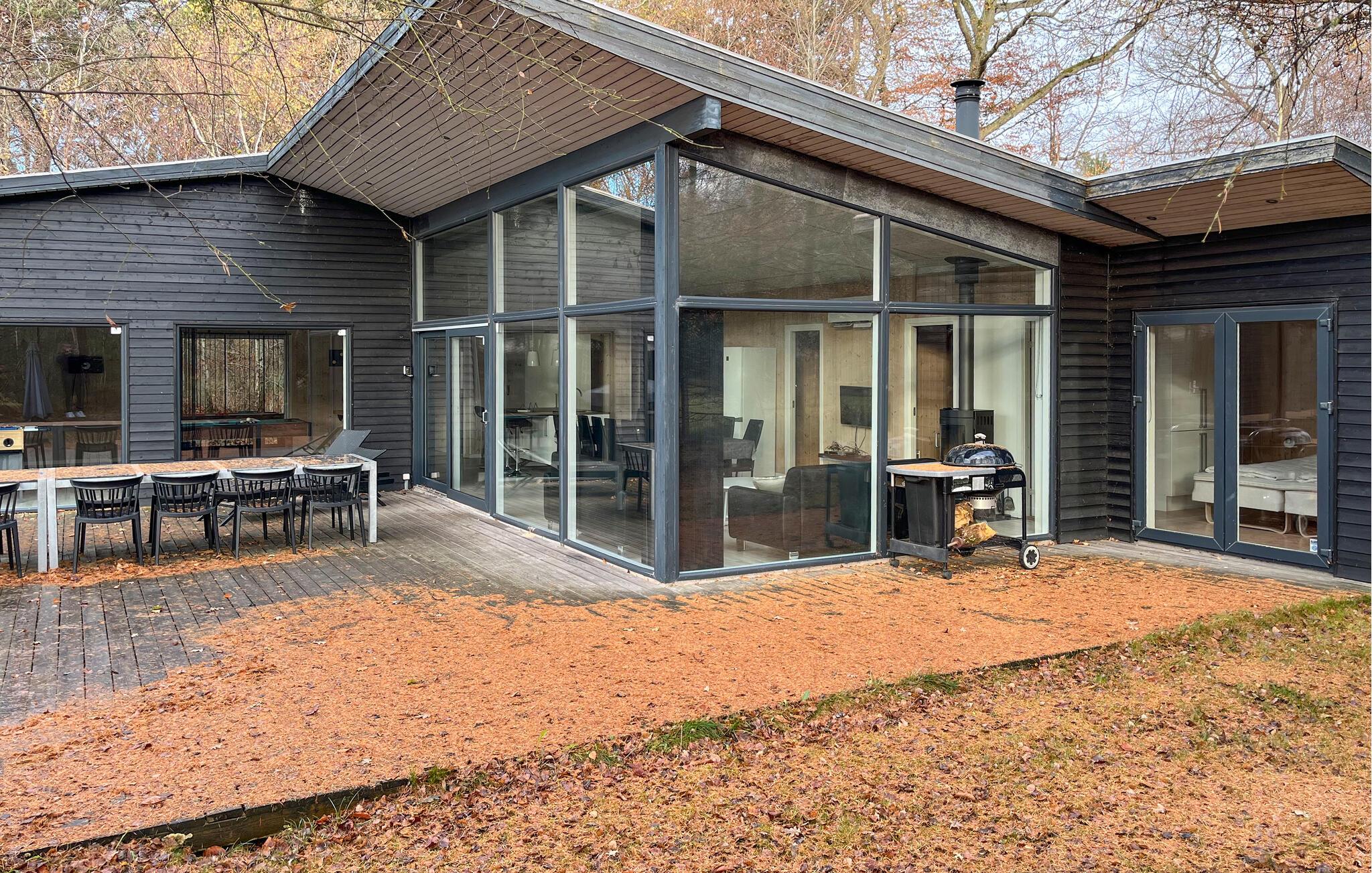 Rummeligt feriehus ved Helberskov Strand med aktivitetsrum, spabad og stor terrasse til afslapning og fælles oplevelser.