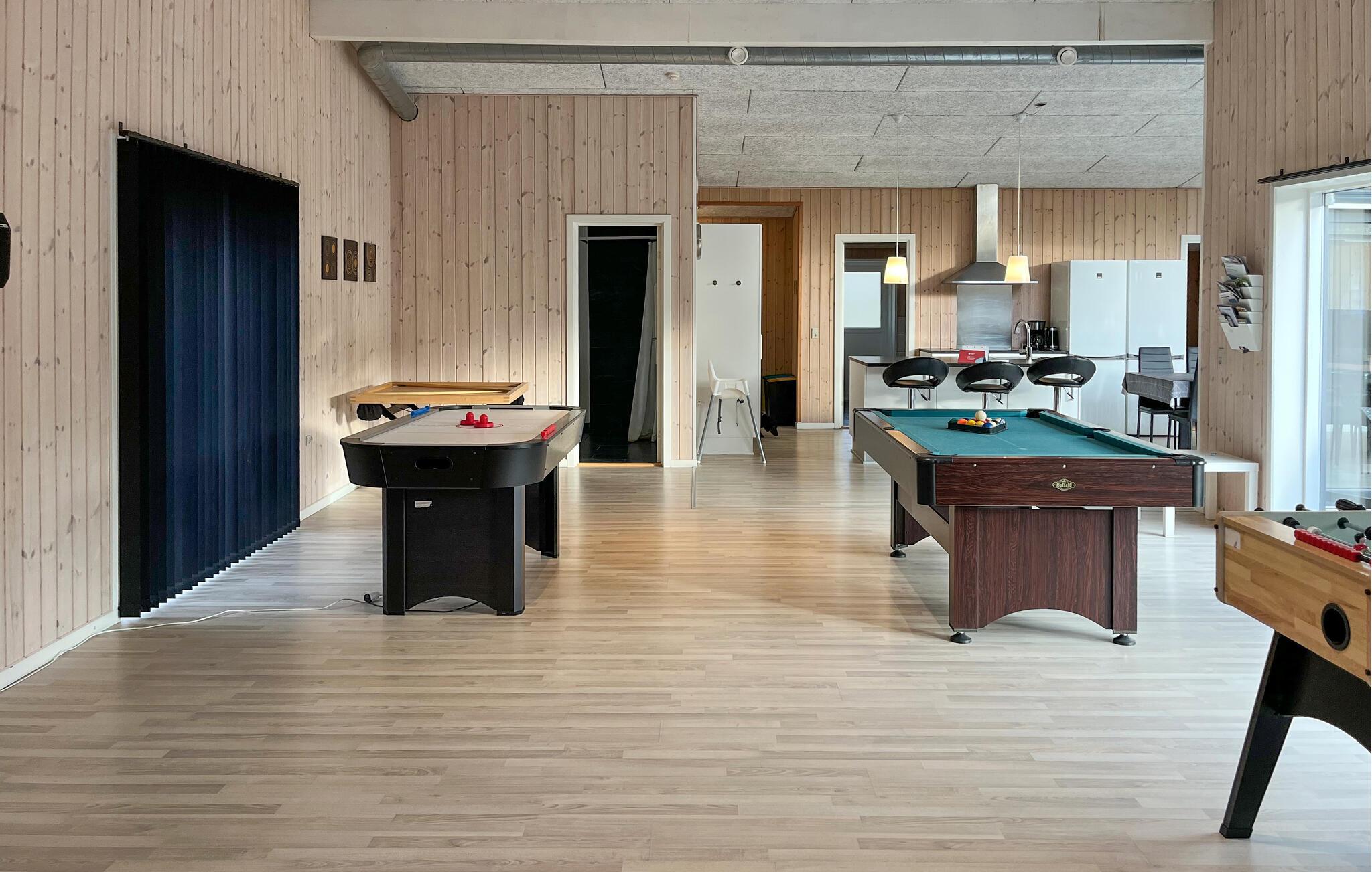 Rummeligt feriehus med aktivitetsrum og spabad