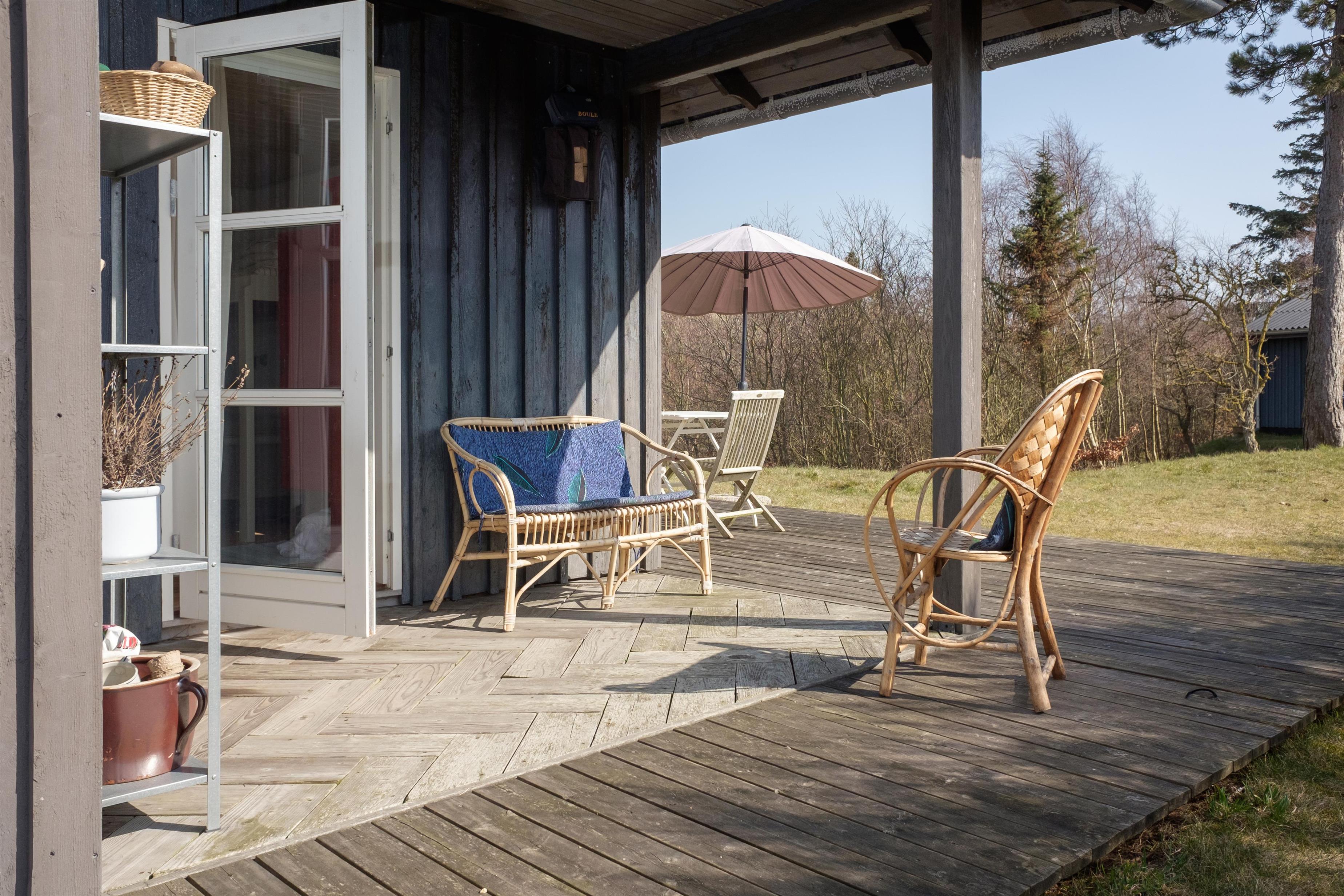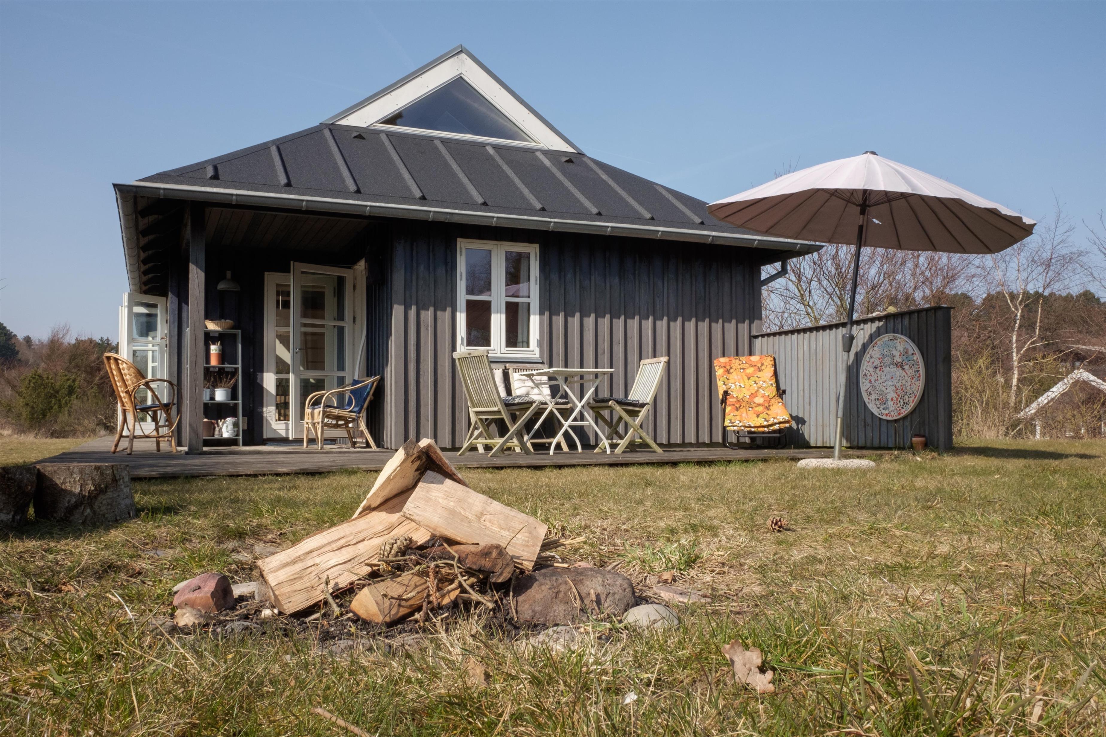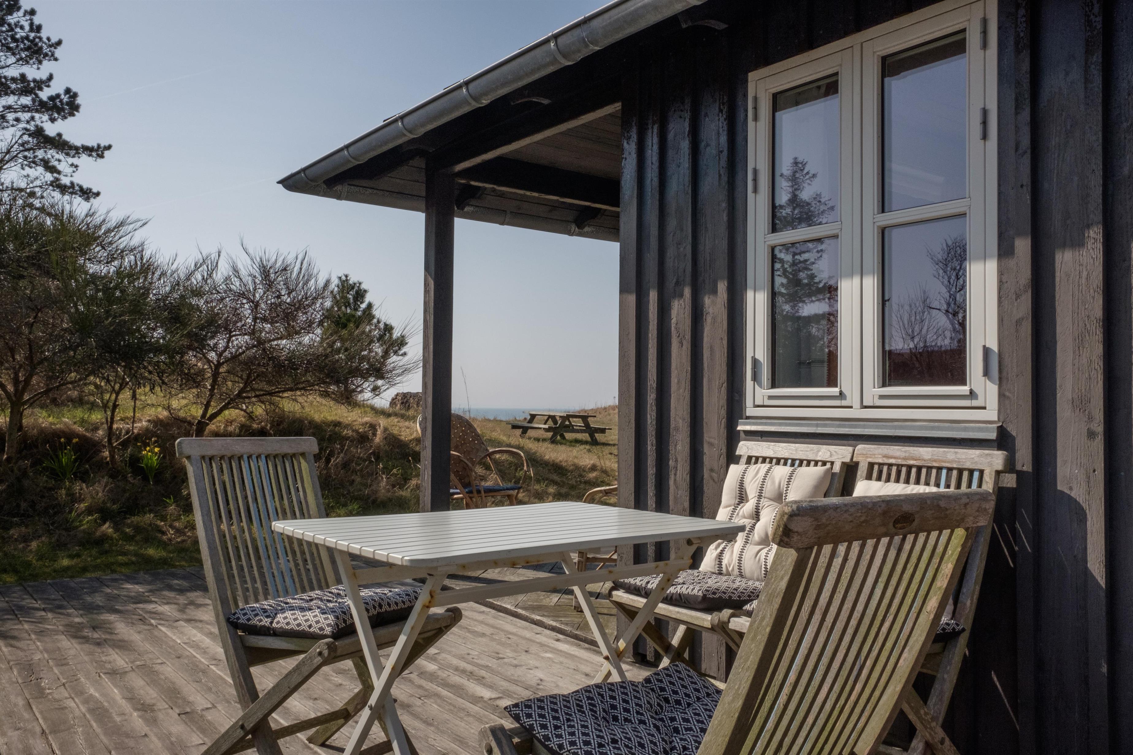 Hyggeligt sommerhus ved Sletterhage Fyr med panoramaudsigt over Aarhus Bugten og stor naturgrund med bålplads og terrasse.