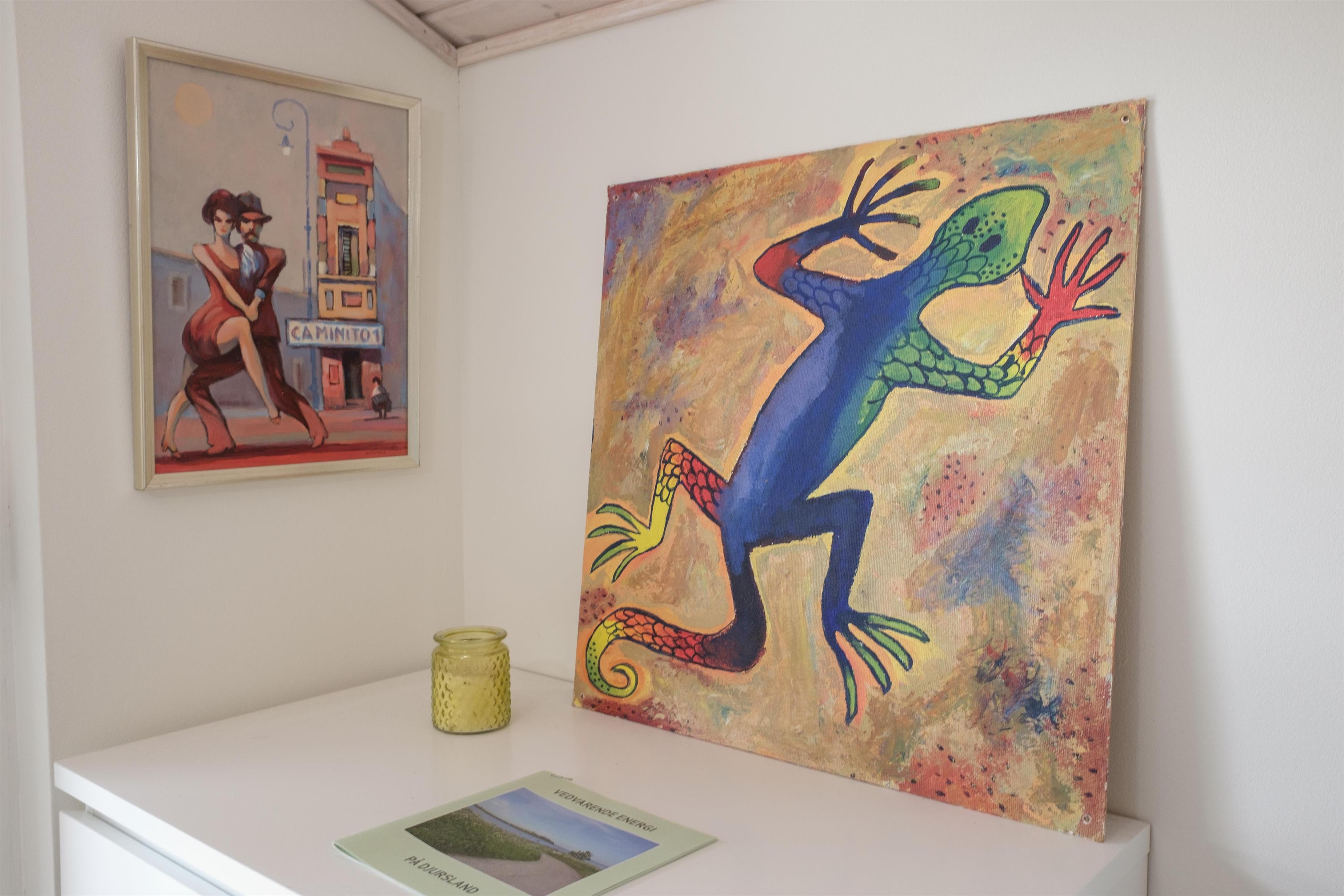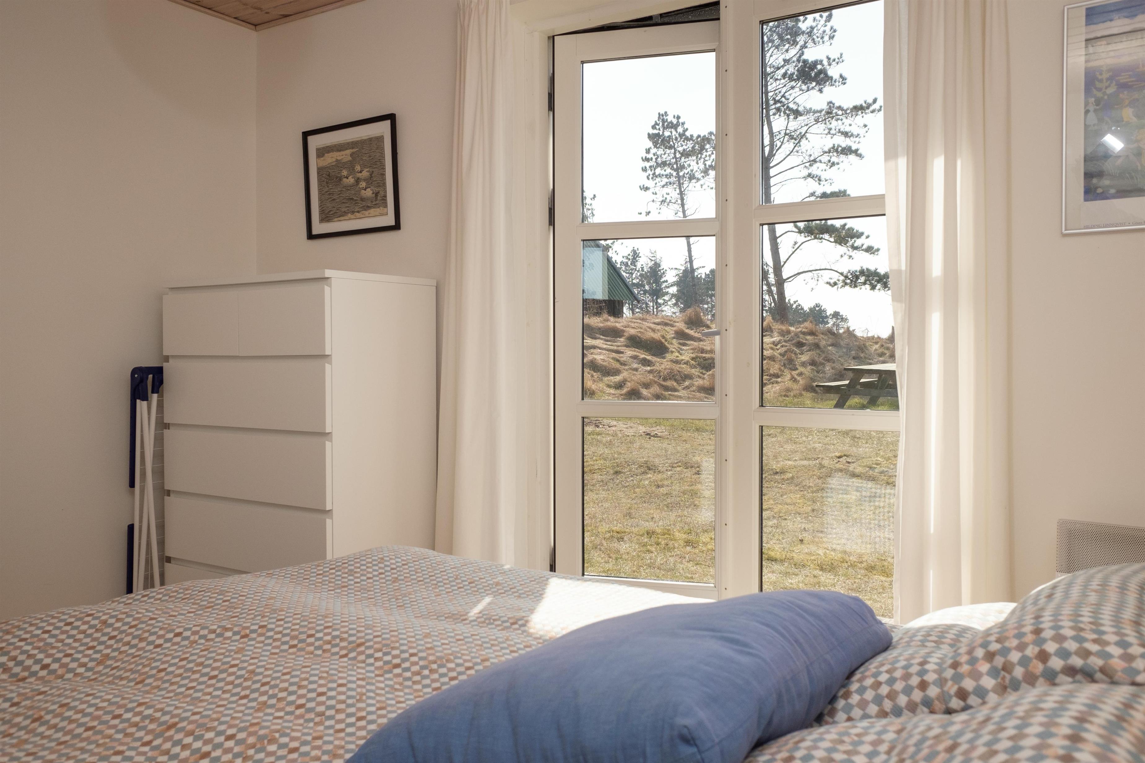 Lys og smagfuld indretning i en lidt rustik og landlig stil med sans for detaljer. Hyggelig opholdsstue med brændeovn, TV med parabol og radio. Stort velindrettet køkken i åben forbindelse med stuen med elkomfur, køle-/fryseskab samt opvaskemaskine. Lyst og lækkert badeværelse med bruseniche, gulvvarme og vaskemaskine. Husets sovepladser fordeler sig på 2 soveværelser, begge med dobbeltseng, på det ene værelse i forbindelse med en ekstra overkøje. Desuden er der en god hems med 4 sovepladser og et rummeligt anneks med dobbeltseng. Barnestol og barneseng forefindes. Internetadgang.