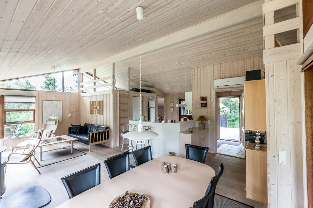 Skønt sommerhus, opført i 2005, beliggende på en naturgrund i rolige omgivelser nær Sletterhage fyrtårn. Store, delvis åbne terrasser med havemøbler og grill. Træhuset fremstår lyst og venligt med en smagfuld møblering og store vinduespartier med godt lysindfald. Husets midtpunkt er en hyggelig opholdsstue med brændeovn, TV (gratis danske kanaler) og Blu-Ray afspiller. I åben forbindelse med stuen findes en god spiseafdeling. Dejligt, åbent og velindrettet køkken med keramisk komfur, køleskab med lille fryser, mikrobølgeovn og opvaskemaskine. Det store badeværelse med gulvvarme samt sauna og spa er egnet til ren afslapning for krop og sjæl. Husets sovepladser fordeler sig på 3 soverum. 2 med dobbeltseng og 1 med enkeltsenge samt opredningsmulighed til to sovepladser på hemsen. Vaskemaskine i bad. Internet. Ikke-ryger-hus.