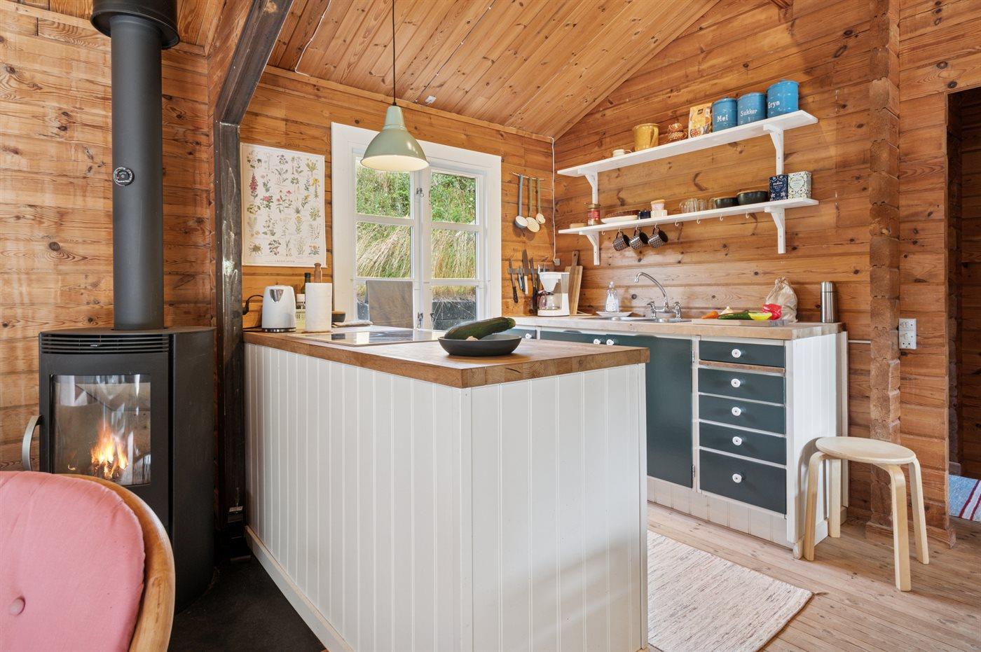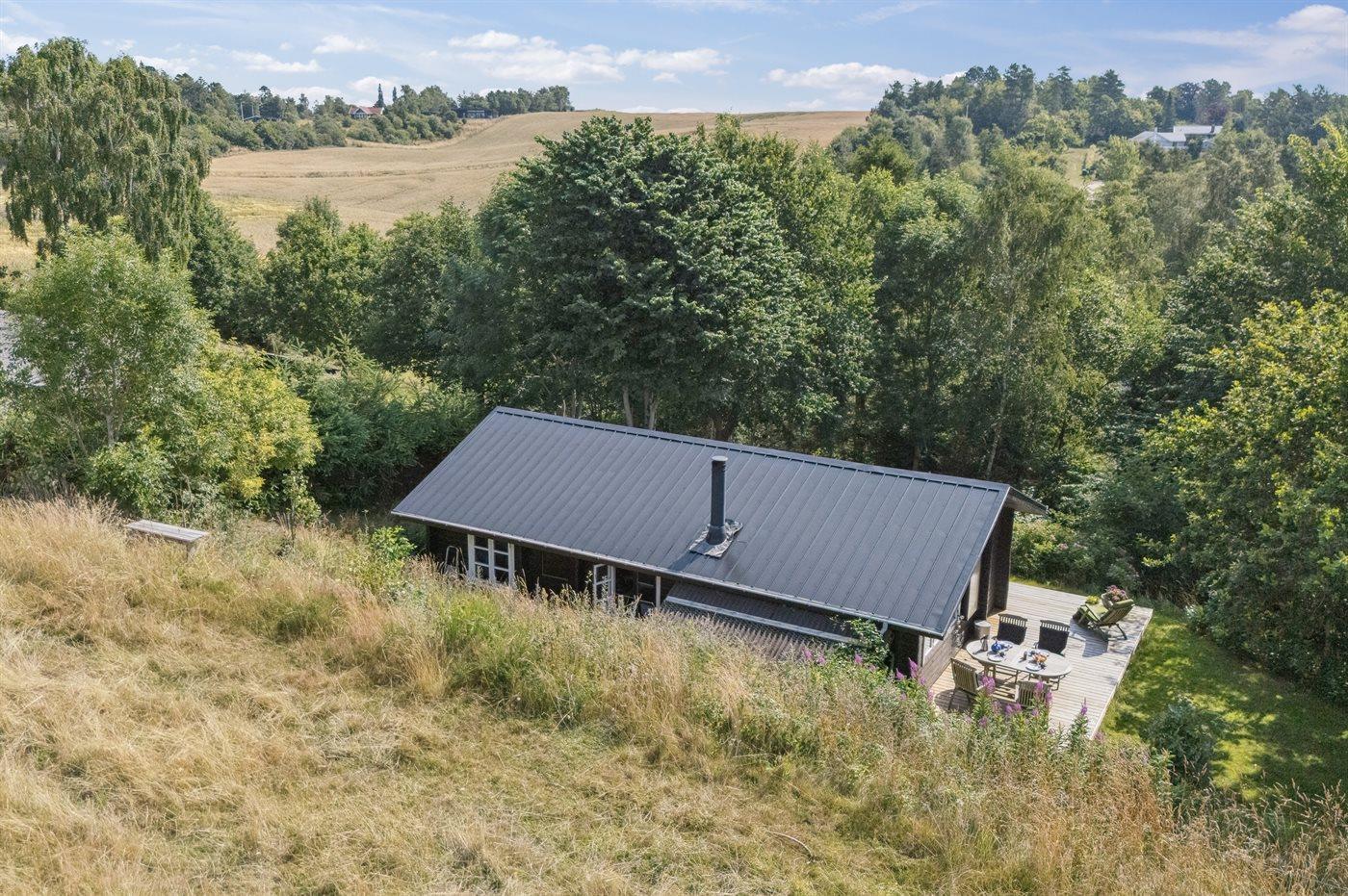 Hyggeligt træsommerhus på toppen af Helgenæs