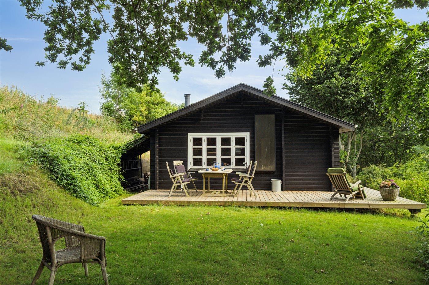 Hyggeligt træsommerhus med naturgrund og bålsted