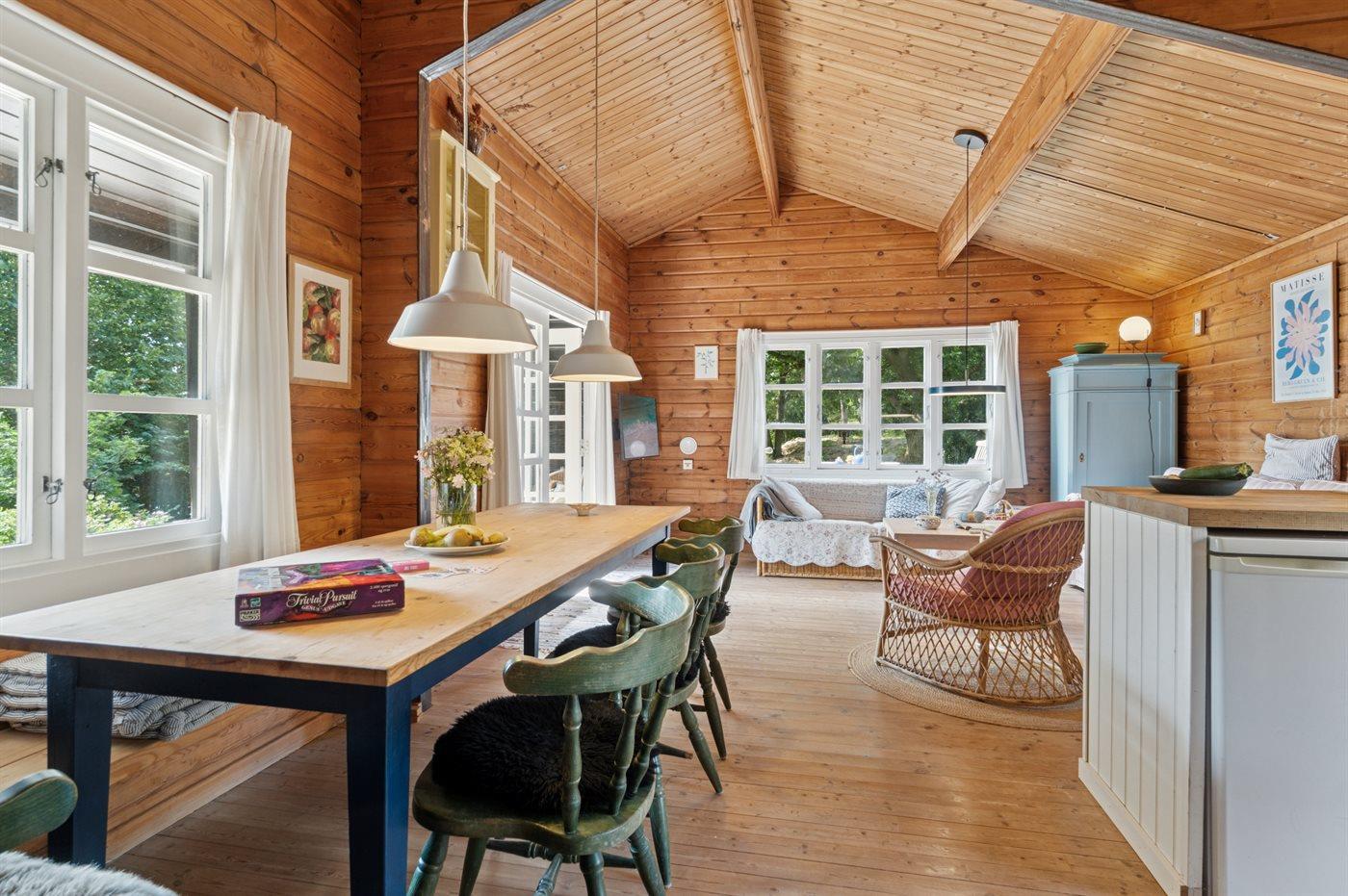 Her er rigtig sommerhusstemning og nærhed til den dejlige natur, området har at byde på. Huset rummer 2 voksne og 2 børn, mens jeres hund også er meget velkommen.