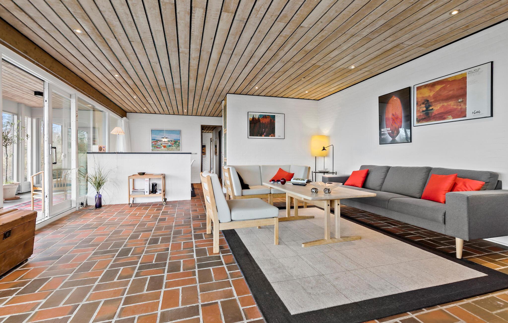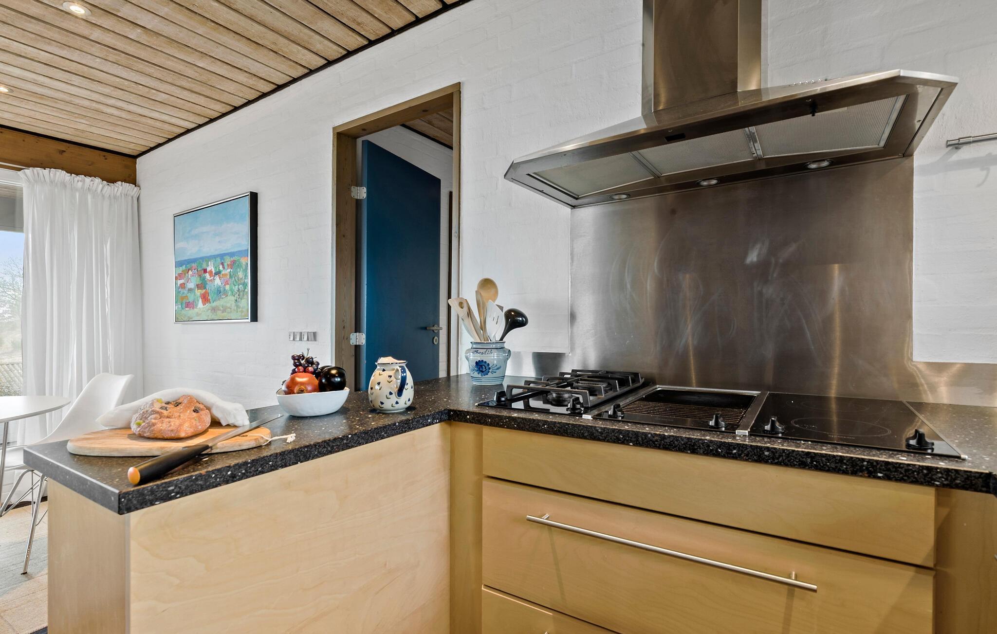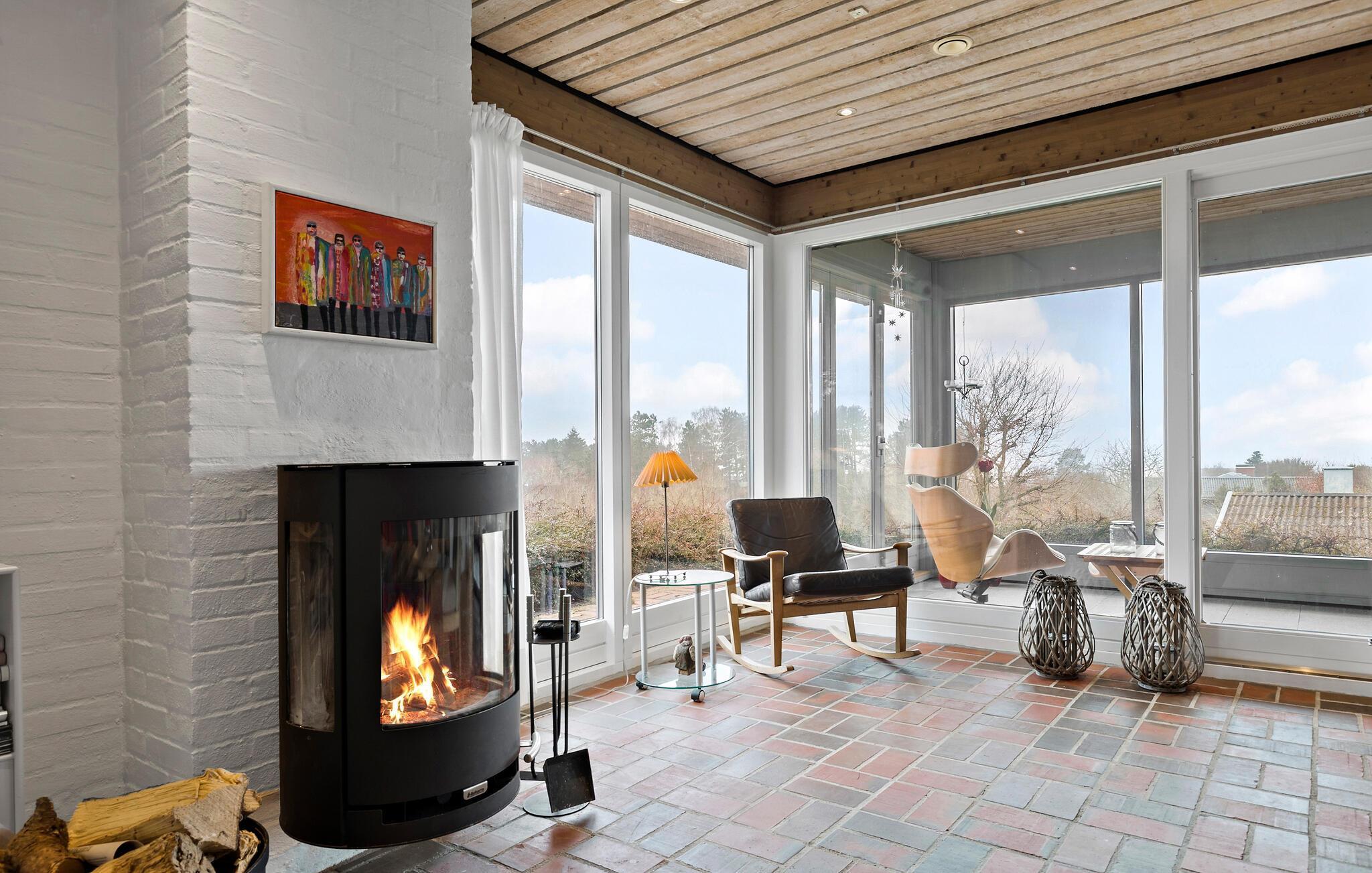 Tilbring en uforglemmelig ferie i dette rummelige feriehus på den maleriske halvø Helgenæs. jeres komfortabelt indrettede feriehus falder harmonisk ind i det blide bakkelandskab og giver jer et tilflugtssted fuld af fred og afslapning. Store vinduesfronter sikrer, at værelserne bliver oversvømmet med lys og forbinder det stilfulde interiør med den omgivende natur. Brug køkkenet til at lave lækre måltider sammen. Den åbne spiseplads skaber en indbydende atmosfære til hyggelige timer med familien. Efter en begivenhedsrig dag kan I bruge husets sauna til at forkæle jeres krop og sind.