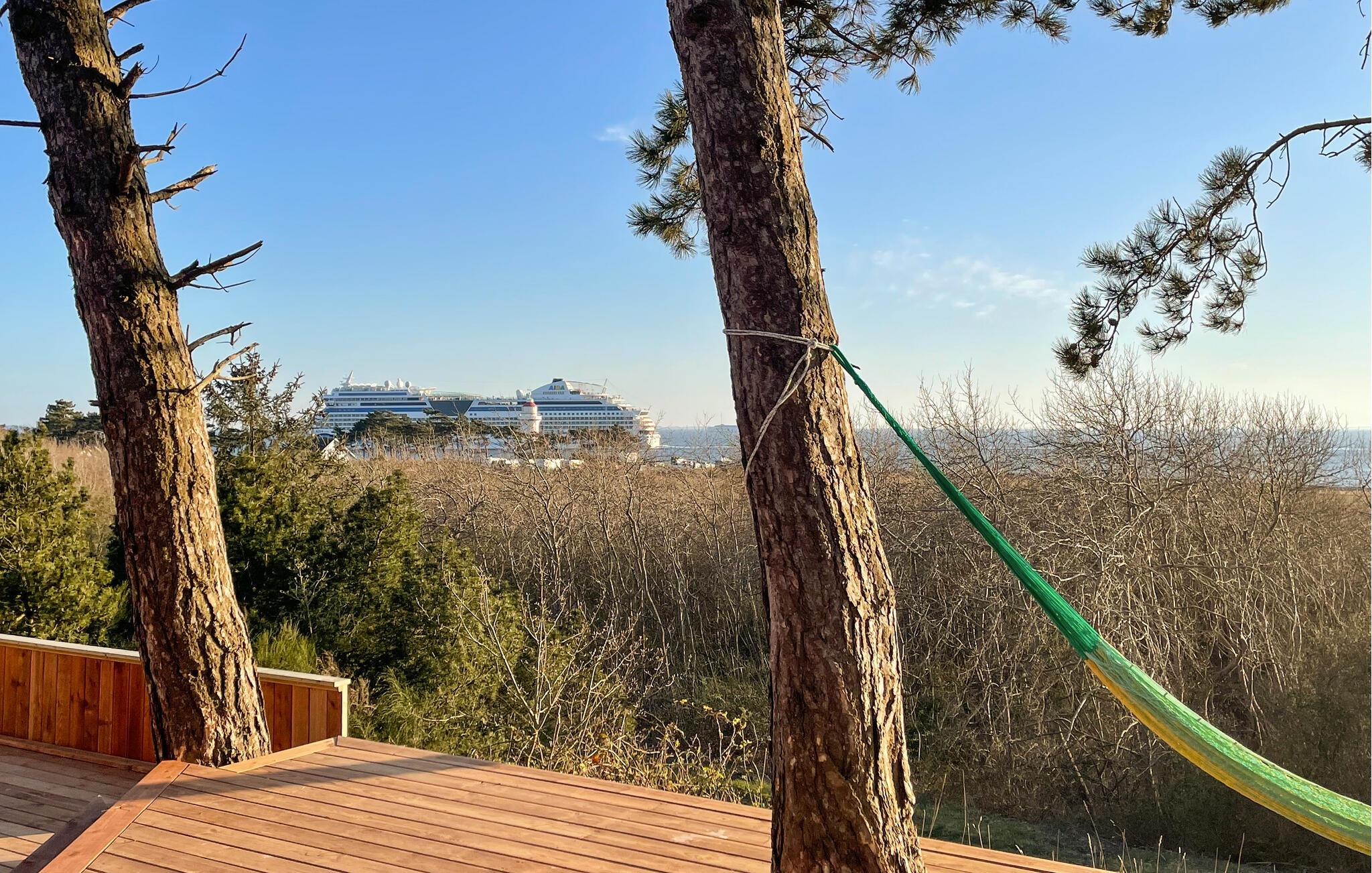 Træd ud på den omgivende træterrasse og lad blikket vandre over bugten. Spis morgenmad under åben himmel, slap af i hængekøjen eller nyd en rolig stund i vildmarksbadet. Brug den udendørs sauna med havudsigt til afslappende timer. Nyd lune aftener på loungemøblerne eller mens I griller på den overdækkede del af terrassen med det store spisebord.