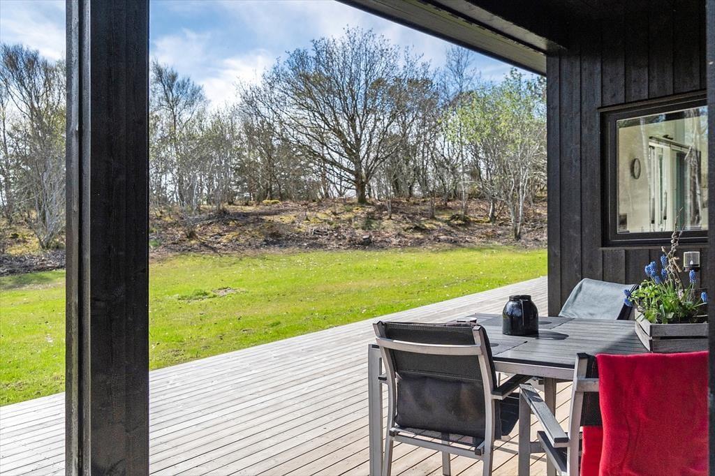 Udenfor venter der en stor terrasse, hvor du kan tilbringe solrige dage og aftener. Terrassen er perfekt til både afslapning og leg, og her er der plads til at spise udendørs, tage en eftermiddagssol eller nyde en grillmiddag, mens du ser solen gå ned over landskabet. Den udendørs bruser er en ekstra luksus, som giver dig mulighed for at opfriske dig selv efter en tur på stranden. For dem, der elsker naturen, er stranden kun en kort gåtur væk, og her kan du dyppe tæerne i Limfjorden eller tage en forfriskende svømmetur. Uanset om du er til solbadning eller aktivitet, tilbyder den private have noget for enhver smag.
