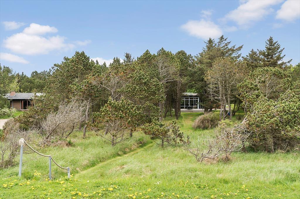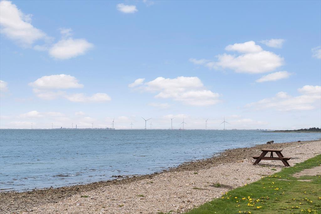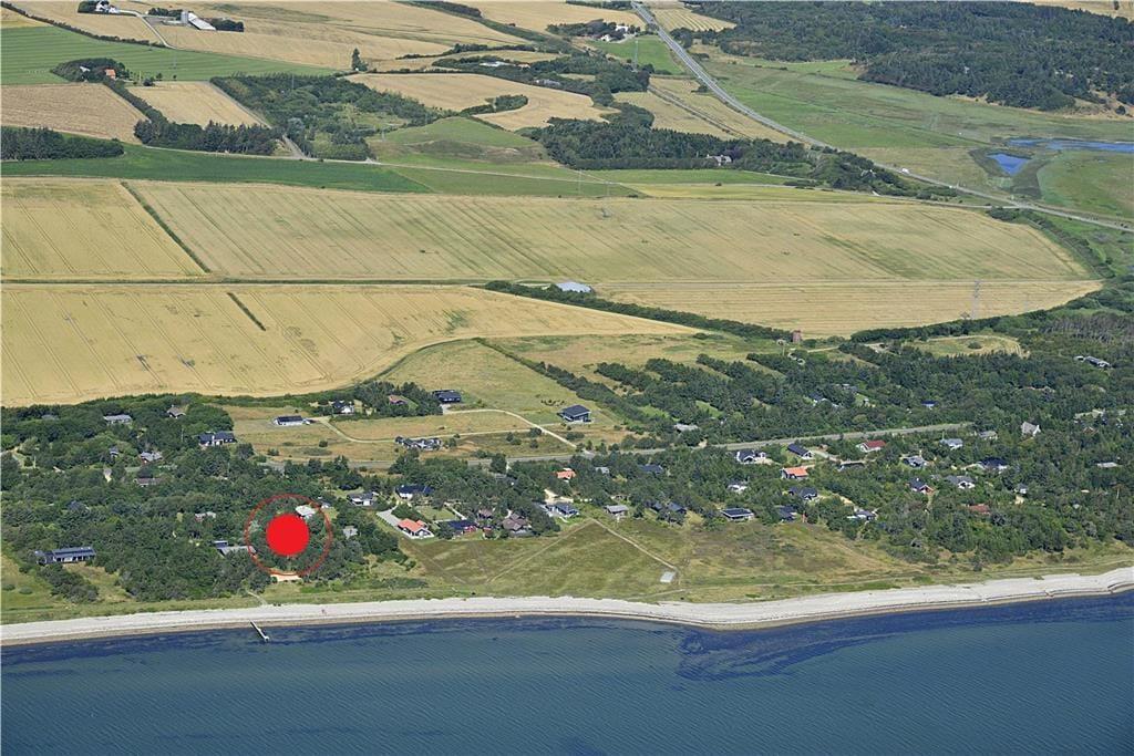 Huset ligger på en 2701 m2 stor og ugeneret naturgrund, som går helt ned til stranden. Petanquebane på friarealet syd for huset. På nordsiden af huset kan bilen stå parkeret i carporten, mens I formentlig mest vil opholde jer på sydsiden, for her er der anlagt en stor, hævet og delvist overdækket træterrasse. Den nybyggede terrasse er et skønt sted at nyde solen og det langsomme ferietempo med få planer. Hvis I har lyst, kan I grille og dække op ved spisebordet, eller også kan I bare læne jer tilbage i liggestolene.