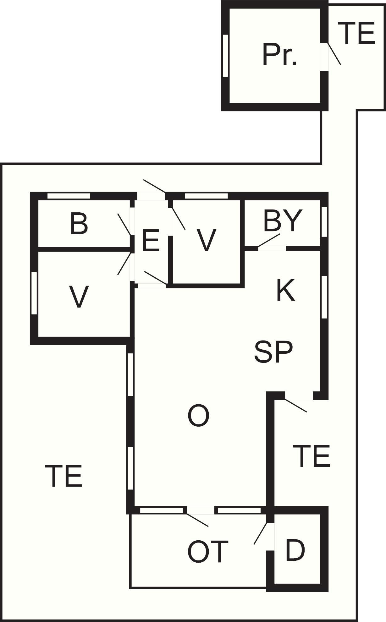 1 Opholdsstue: 38 m2, brændeovn, radio, cd-afspiller, tv