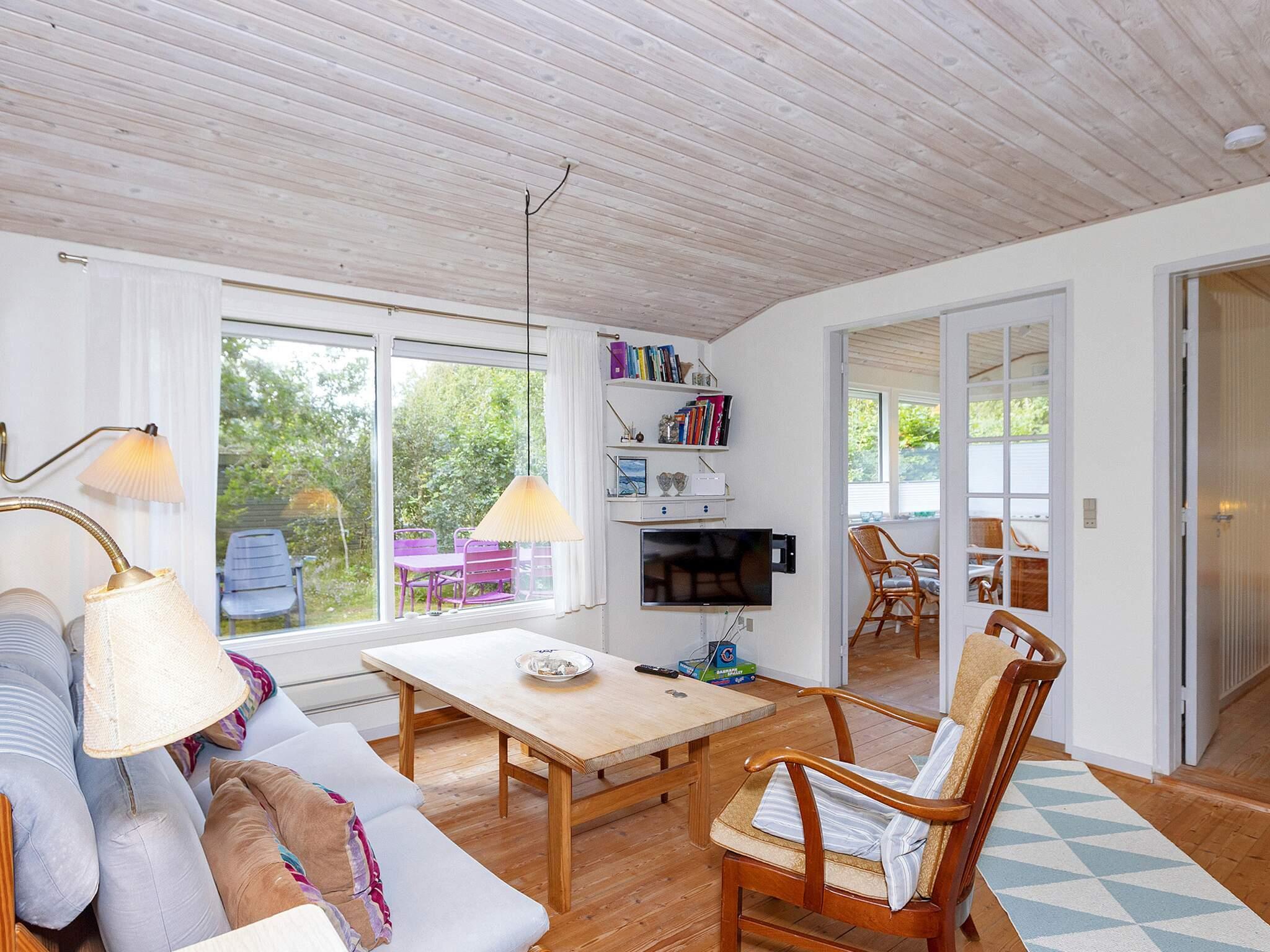Hytten har et veludstyret køkken med opvaskemaskine og en indbydende opholdsstue med tv, Chromecast og Wi-Fi. En brændeovn i stuen giver varme og hyggelig stemning under køligere aftener. Der er to komfortable soveværelser med dobbeltsenge, og badeværelset har gulvvarme og vaskemaskine for ekstra bekvemmelighed.