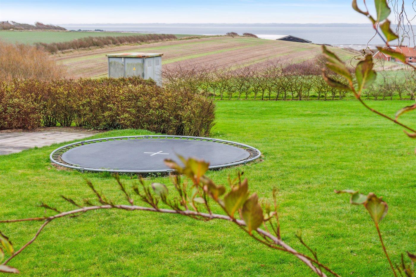 Ferieboligen er beliggende på en 7000 m² stor naturgrund. Der er 12000 m til havet. Der er 500 m til fjorden. Nærmeste forretning er beliggende i en afstand af 7000 m. Der er en golfbane i en afstand af 7000 m. Til ferieboligen hører 50 m² åbent og 25 m² overdækket terrasseareal - heraf i alt 40 m² lukket terrasse. Trampolin. Grill til rådighed. Der er garage til rådighed. Parkering ved ferieboligen.