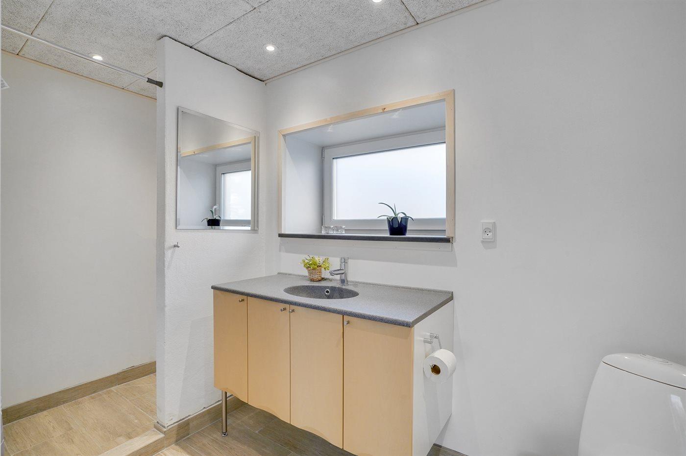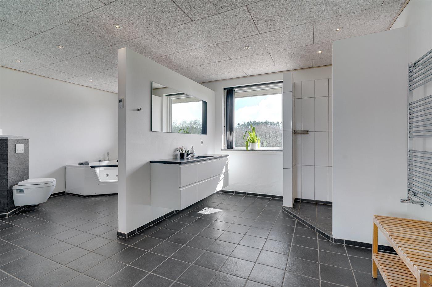 Der er 3 badeværelser med bruseniche og 4 toiletter, heraf 1 gæstetoilet. Der er gulvvarme på 1 badeværelse. Der er gulvvarme på gæstetoilettet.