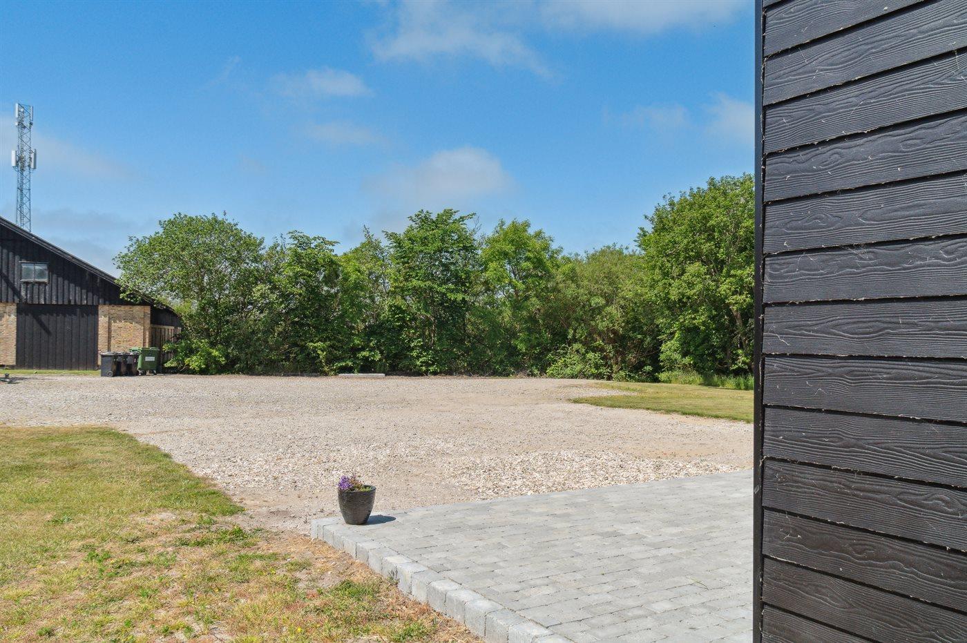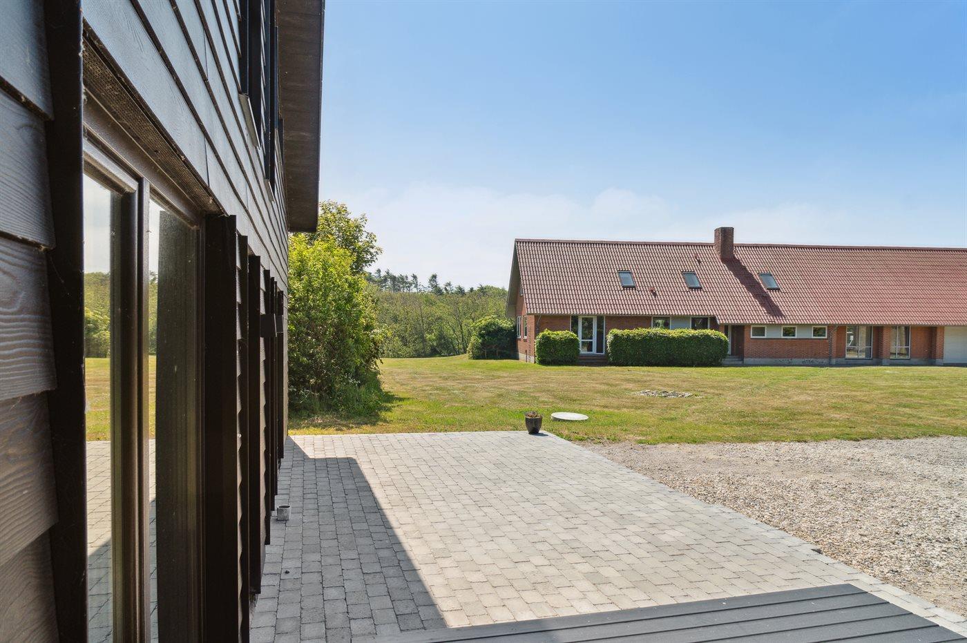 Ferieboligen er beliggende på en 10000 m² stor naturgrund. Der er 300 m til fjorden. Nærmeste forretning er beliggende i en afstand af 5000 m. Der er en golfbane i en afstand af 20000 m. Til ferieboligen hører 70 m² terrasseareal. Desuden er der 30 m² overdækket terrasse. Gynge. Trampolin. Fodboldmål. Bålsted. Grill til rådighed. Parkering ved ferieboligen.