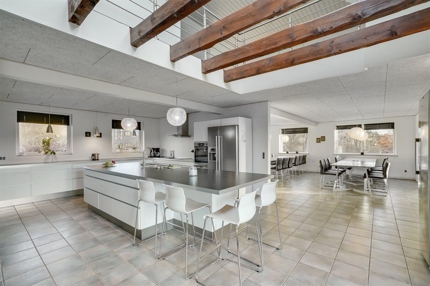 Køkkenet er udstyret med 1 køleskab. Der er 4 induktionskogeplader, varmluftovn, mikrobølgeovn samt opvaskemaskine.