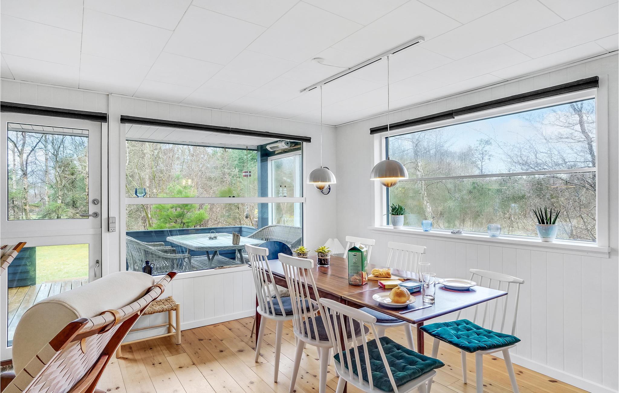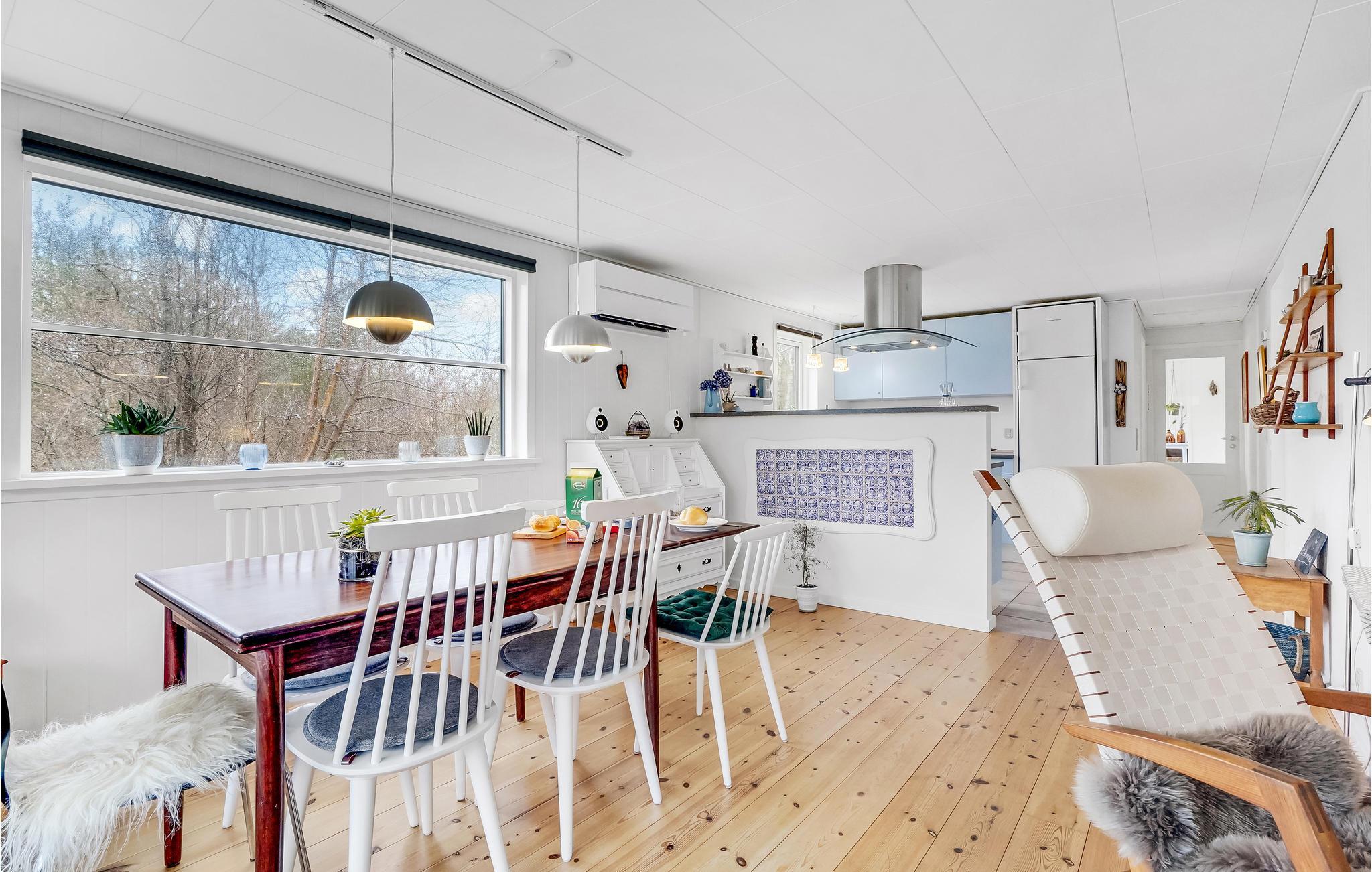 Indvendigt byder huset på lyse, pænt indrettede rum med komfortable møbler. Det rummelige og veludstyrede køkken er et højdepunkt, ligesom den kombinerede spise- og opholdsstue med sofa og Smart-TV.