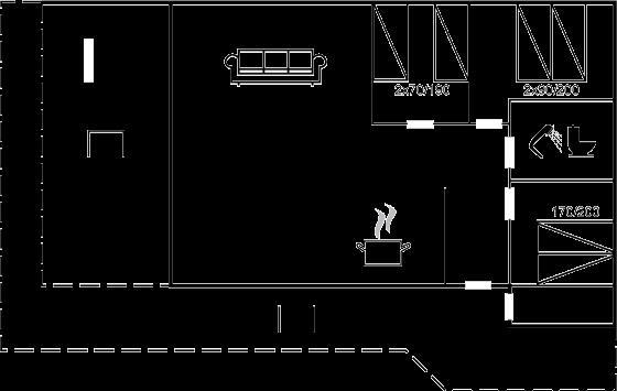 Køkkenet er udstyret med 1 køleskab. Der er 4 induktionskogeplader, varmluftovn samt opvaskemaskine.