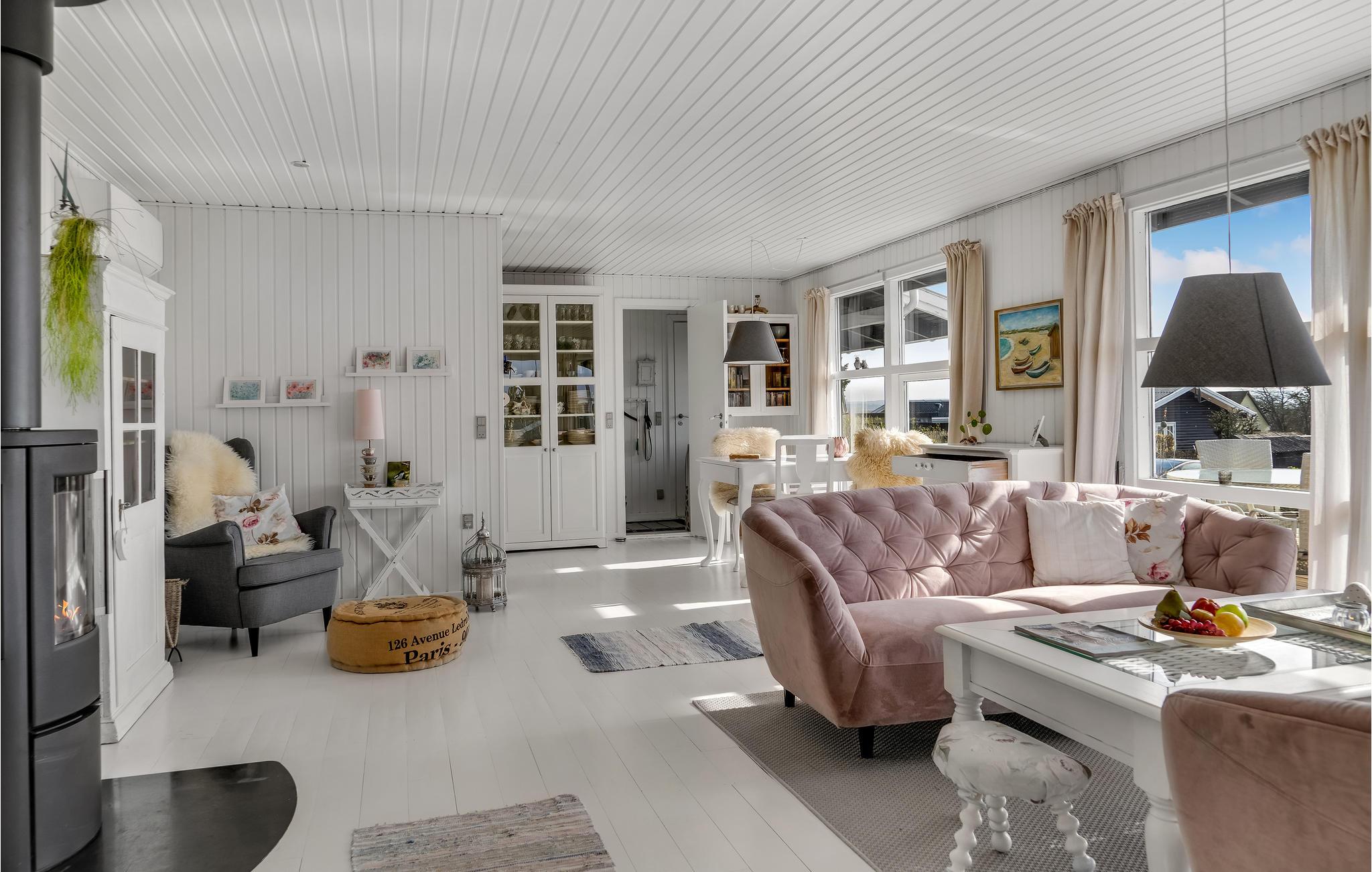 Sol, vand og massevis af fredfyldte stunder langt væk fra hverdagens travle program. Her på Helnæs kommer man automatisk ned i tempo. Huset er indrettet med mange indfaldsvinkler til lyset, så selv om I ikke holder sommerferie her, er det dejligt at sætte sig ved vinduerne og suge til sig af det naturlige lys fra himlen og havet. I kan se frem til moderne faciliteter, elegante indretningsløsninger og en brændeovn, som spreder varme og hygge på de kølige dage. Udendørs er der en dejlig træterrasse, hvor I kan nyde solen og dagens måltider, mens I kigger ud over havet. I løbet af dagen er det også et perfekt sted at sætte sig med en bog, mens børnene spiller fodbold i haven.