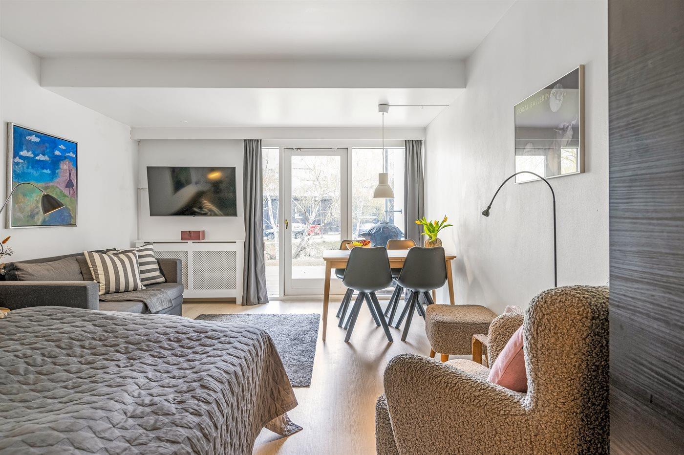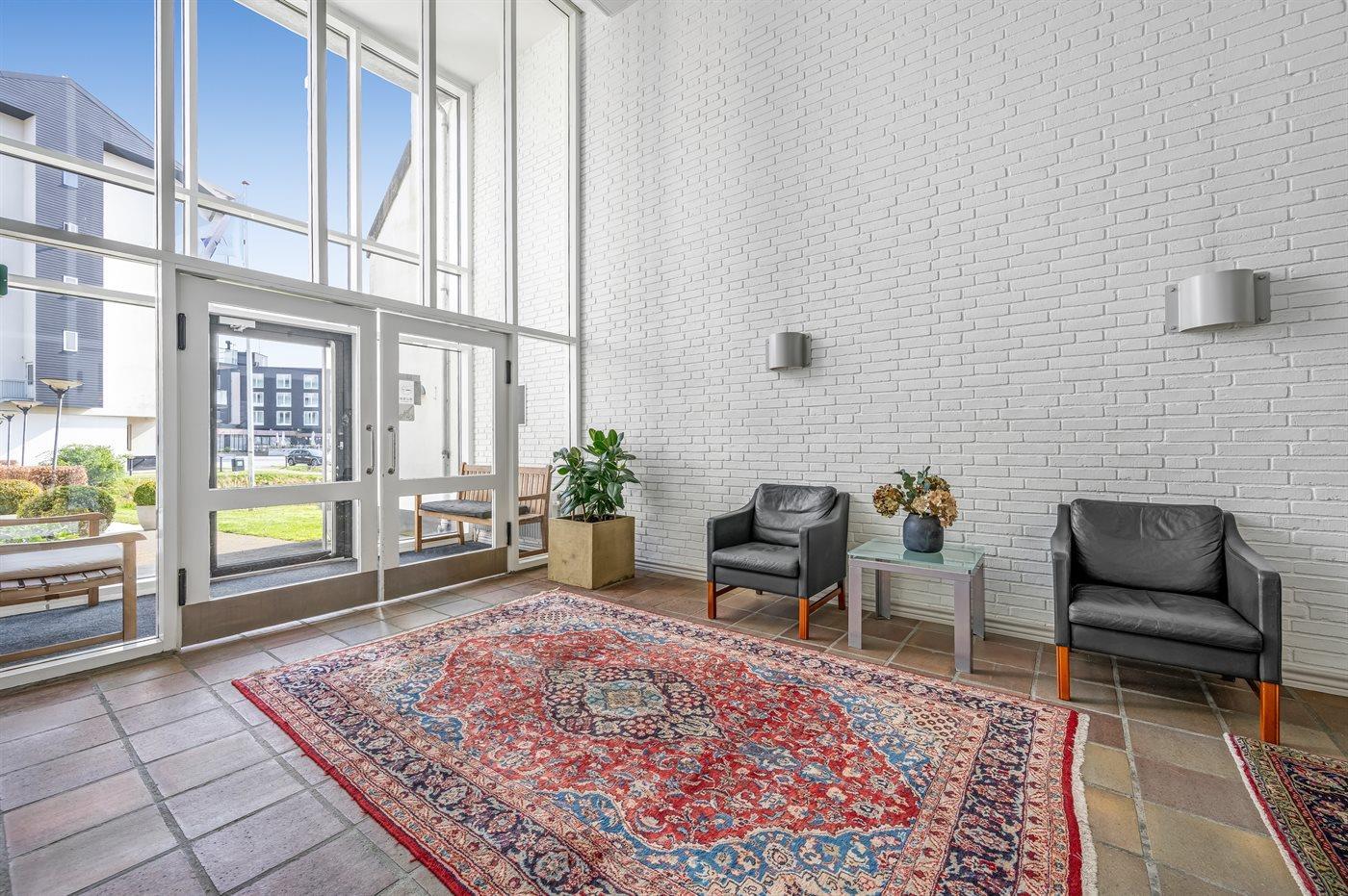 Bemærk: Der findes fælles vaskemaskine og tørretumbler i et separat rum og der er mulighed for opladning af elbil på parkeringspladsen. Der er betalingsparkering på hele området, læs reglerne og priser for parkering ved ankomst.