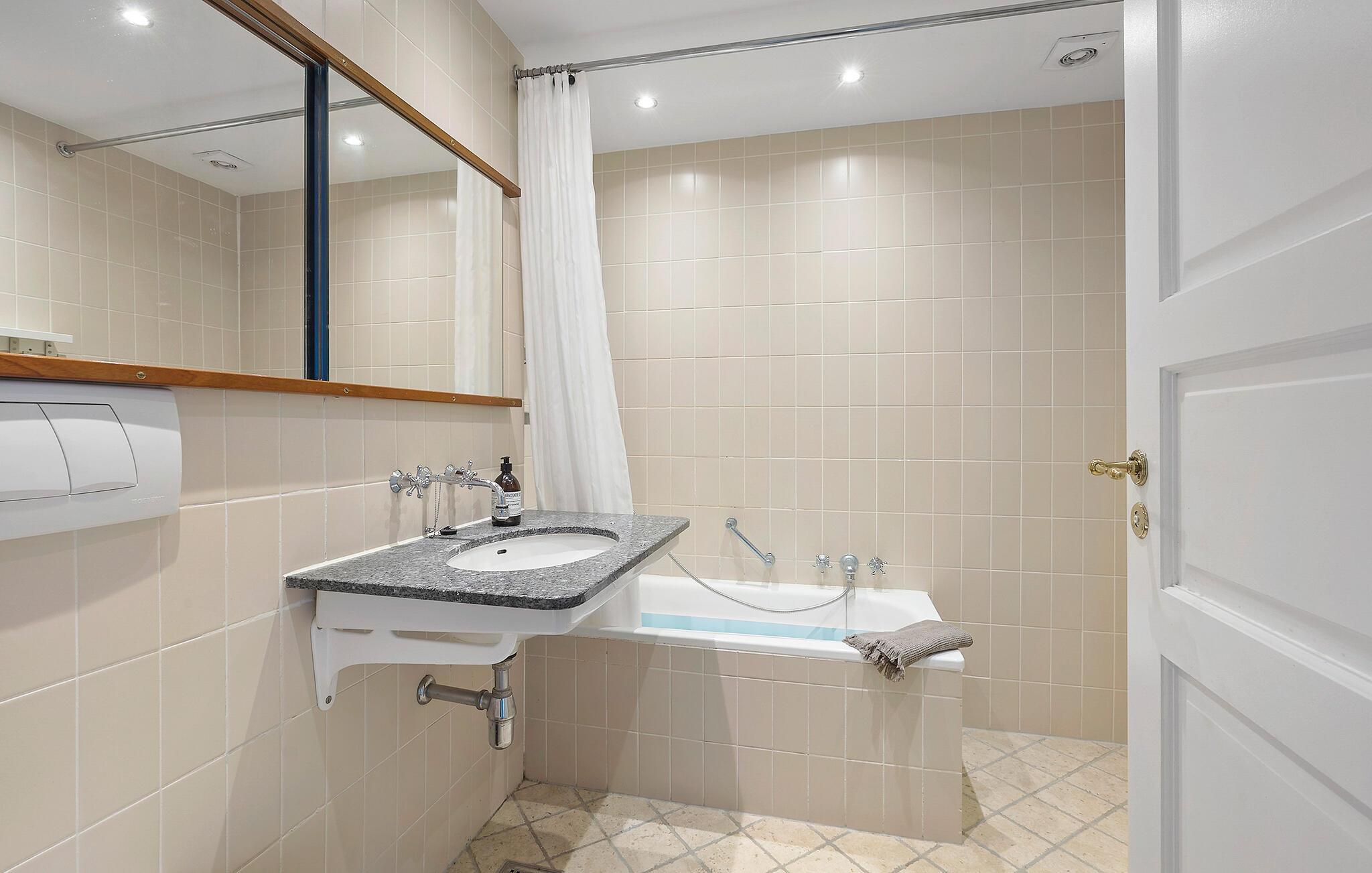 Badeværelse (nr. 1) - WC. Varmt og koldt vand. Bruser og badekar
