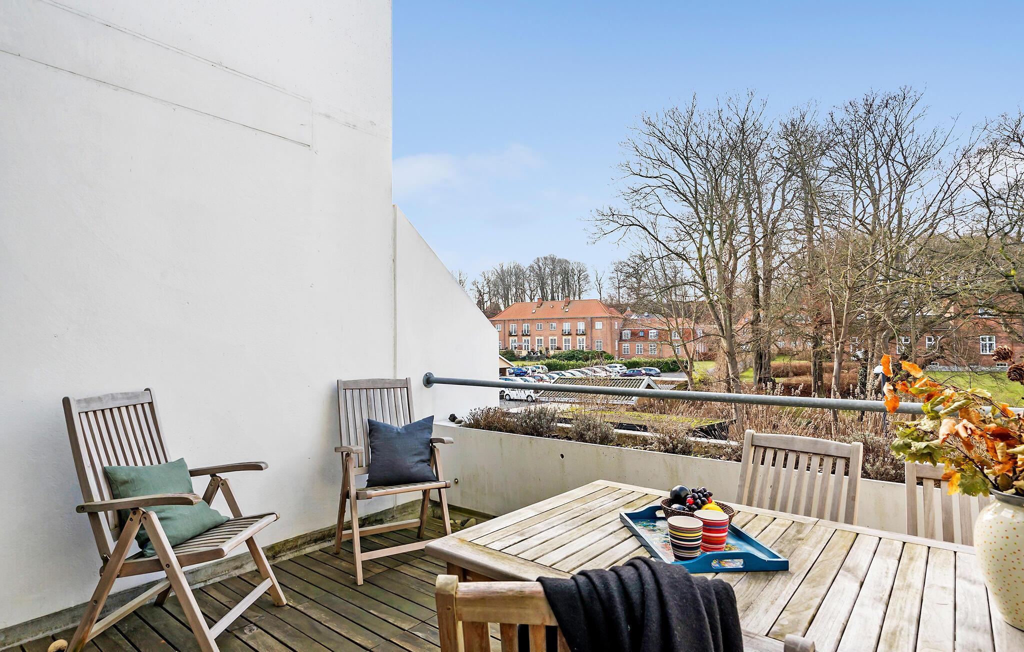 Gør jer klar til en ferie med komfort, hygge og afslapning i denne indbydende lejlighed i historiske Helsingør. Lejligheden ligger på første sal i Marienlyst Palæ, og indretningen er både smagfuld, detaljerig og gennemtænkt. Fra det åbne køkken-alrum er der direkte udgang til terrassen, hvor der er lagt op til mange timers lækker solbadning. Hvis I hellere vil læse en god bog i skyggen, kan I blot køre den elektriske markise ud. På lejlighedens øverste etage finder I soveværelser og et klaver, som I kan benytte til fællessang eller solo-udfoldelse, som I nu lyster. Her er der også to altaner, så I kan finde sol, skygge og læ i løbet af dagen.