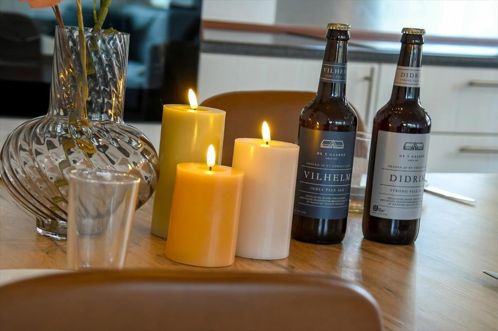 Indenfor mødes du af en lys og hyggelig atmosfære, hvor der er tænkt på, at ferielivet skal være både enkelt og rart. Indretningen er præget af varme farver og små detaljer, der hurtigt får stedet til at føles hjemligt. Når du træder ind ad døren, kan du lægge hverdagens stress bag dig og i stedet nyde stilheden, samværet og de små ferierutiner, der giver en særlig ro i kroppen. Det åbne opholdsrum indbyder til afslapning og fællesstunder – hvad enten det er over en god middag, en stille stund med en bog eller en hyggelig snak ved spisebordet. Og har du din firbenede ven med, er det skønt at vide, at der også er plads til at finde sig godt til rette med en lun kurv i et hjørne.