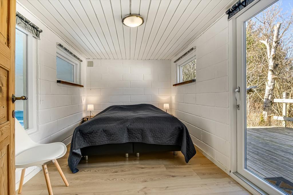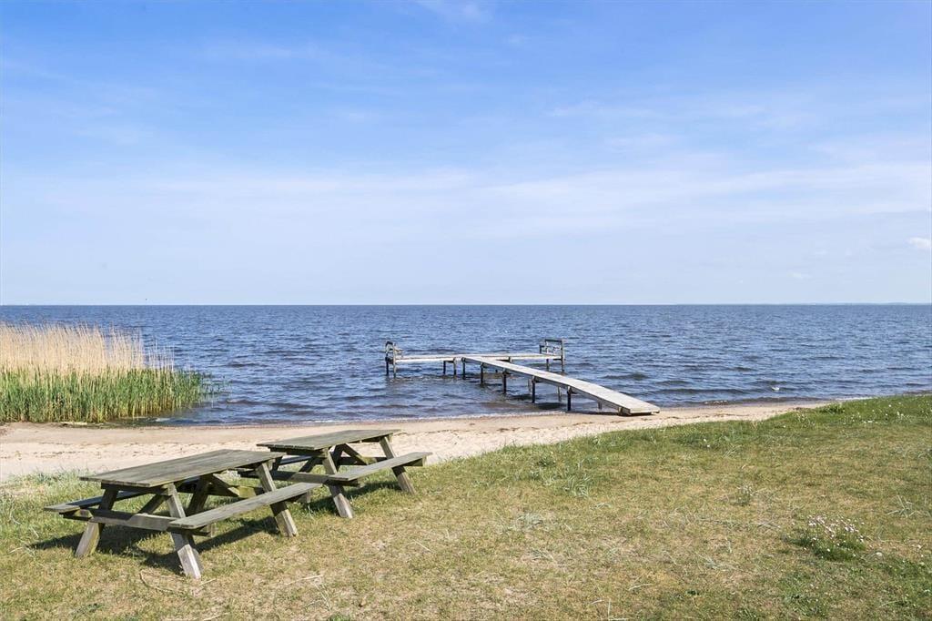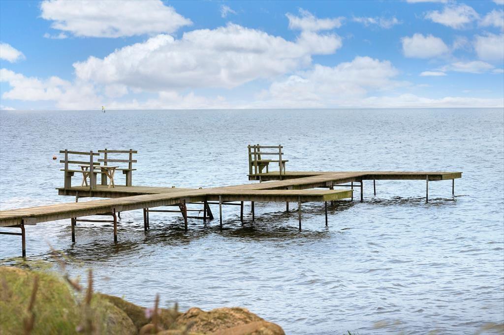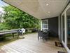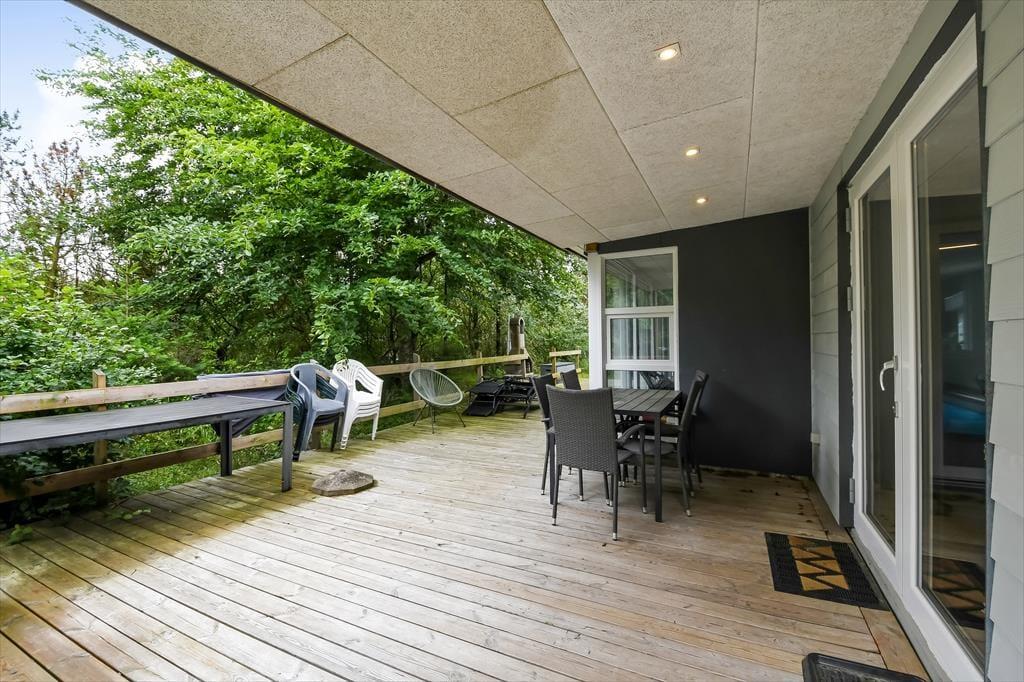 Ligesom selve sommerhuset er naturgrunden stor, og udearealerne er godt afskærmede af randbevoksningen, så du og dine kære får en ugeneret ramme om det udendørs driverliv. Rundt om sommerhuset venter der flere dejlige terrasser, så hvis du vil finde en opholdsplads i en solstråle efter svømmeturen eller tage sommerfrokosten med ud i det fri, er det oplagte muligheder. En del af terrassemiljøet er overdækket, hvis I vil sidde i ly, når duggen begynder at falde om aftenen – det er dejligt at samles her i tusmørket med udsigt til løvtræernes bladhang og lyden af naturgrundens fugle, der synger dagens sidste melodier.
