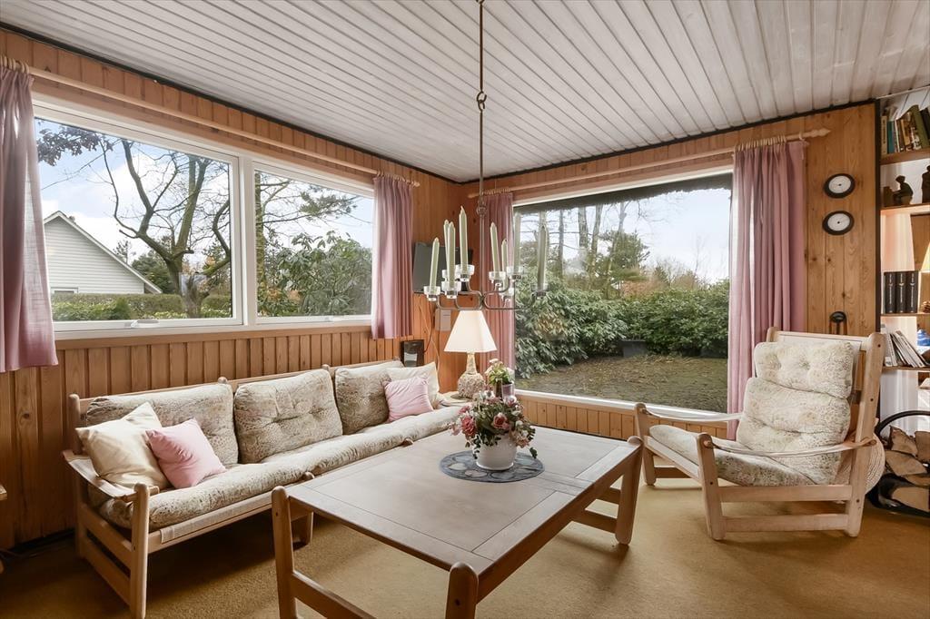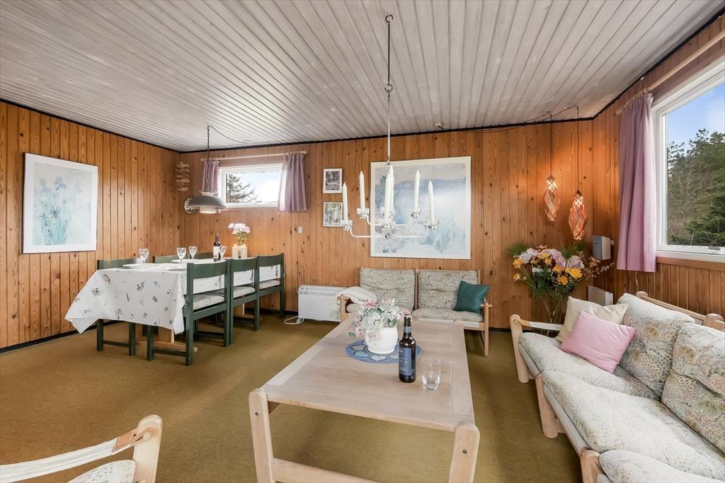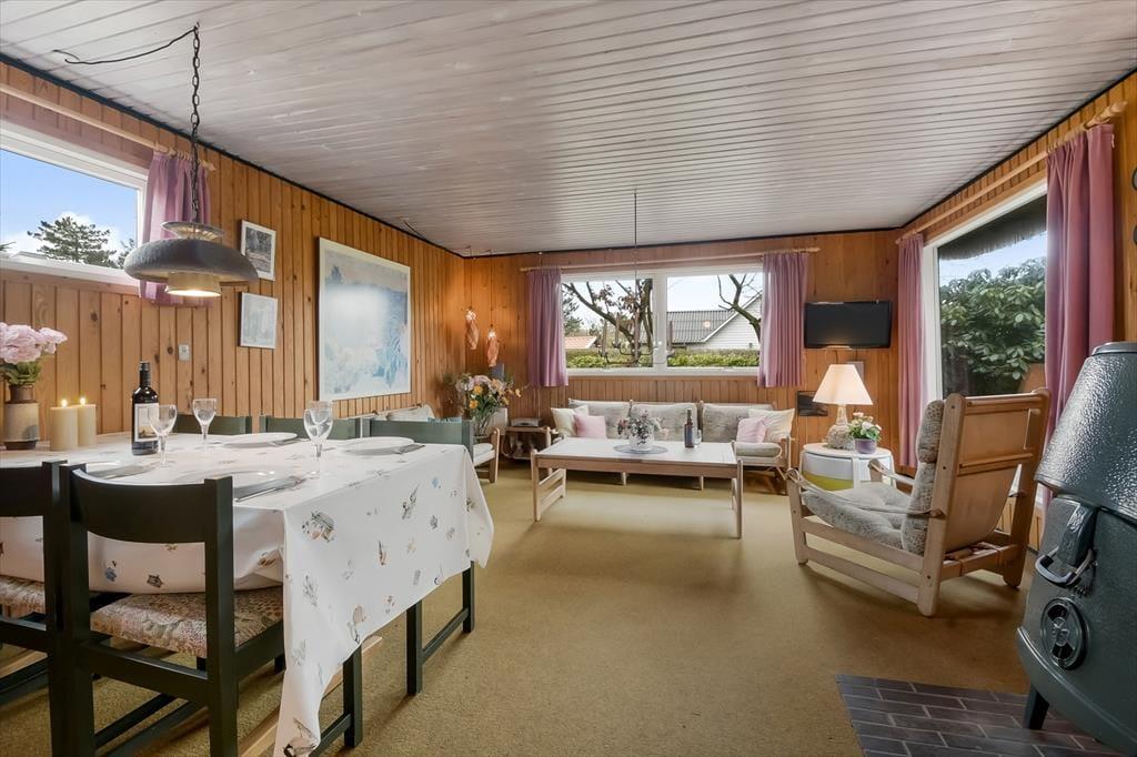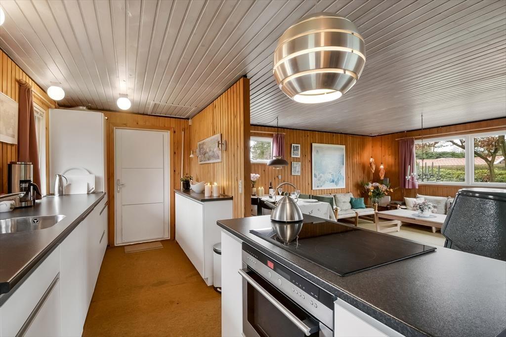 Indenfor bliver du mødt af en varm og indbydende atmosfære, hvor den charmerende indretning skaber en ægte sommerhusstemning. De lyse rum og hyggelige kroge giver en afslappende atmosfære, og det velindrettede opholdsrum gør det nemt at slappe af og føle sig hjemme. Stuen er husets naturlige samlingspunkt, hvor du kan synke ned i sofaen med en god bog eller nyde brændeovnens knitren på kølige dage. Det åbne køkken gør det nemt at tilberede lækre måltider, mens samtalen flyder frit mellem madlavning og sofahygge. Når dagen går på hæld, kan du trække dig tilbage til de hyggelige soveværelser, hvor du kan lade op til endnu en dag fyldt med ferieglæder.