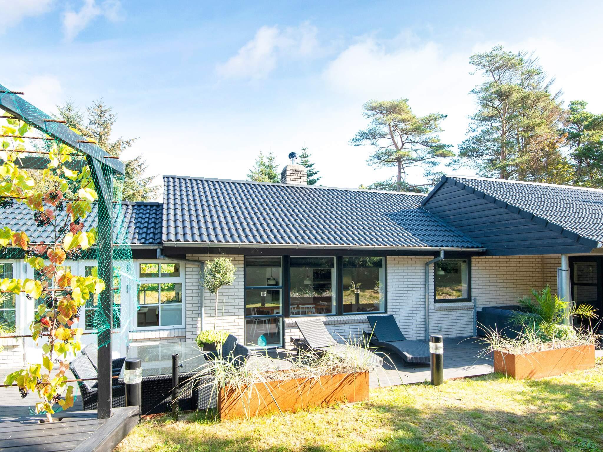 Sommerhus med spabad og unik, stille beliggenhed i en lille lysning i Hemmet Strand. Kun 4 minutters gang fra sommerhuset ad skovstier ligger stranden. Sommerhuset er med opdelt forældreafdeling med masterbedroom med eget tv samt og en børneafdeling. Godt køkken med alle moderne faciliteter. Udestuen er helt integreret i huset og har et fantastisk lysindfald og herfra er et 180 graders view over haven. Overalt fra sommerhusets opholdsrum, terrasse og forældresoveværelse kan den storslåede naturgrund nydes ugenert. Grundens mange træer bringer huset en helt speciel stemning, hvor egern og harer også føler sig hjemme. Sommerhuset er tilmeldt svøm og leg, som giver gratis adgang til 9 svømmehaller. Udlejes ikke til ungdomsgrupper.